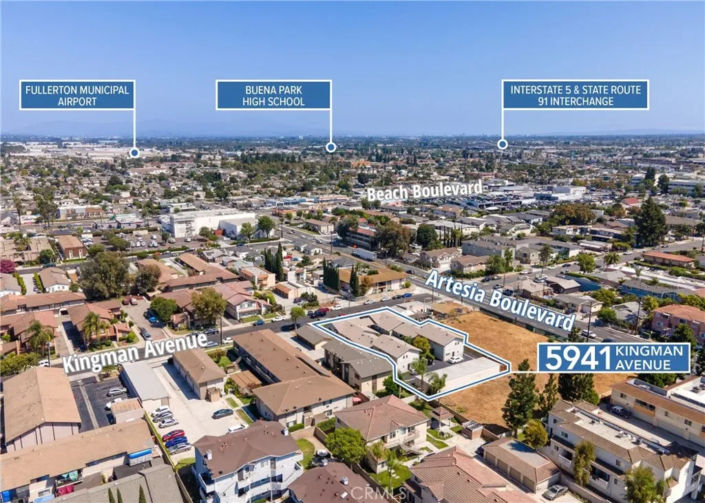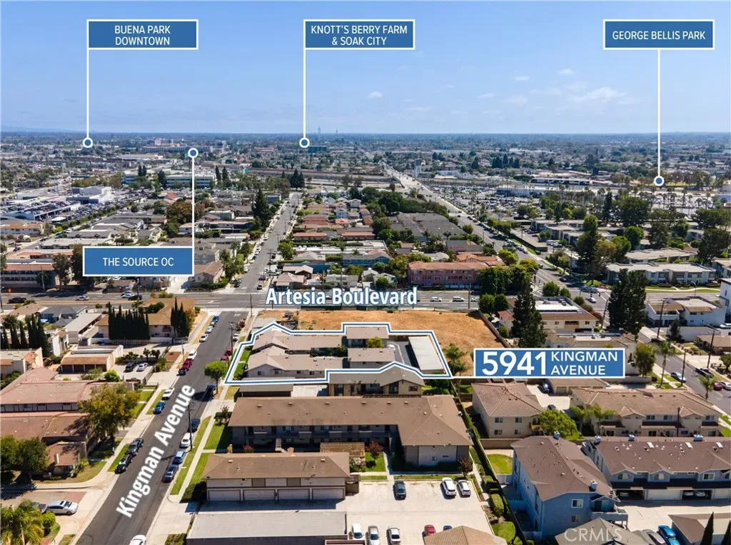 5941 Kingman Avenue is an 8-unit multifamily investment property ideally situated in Buena Park, California. Constructed in 1966, the 8,721-square-foot property offers a compelling unit mix of six two-bedroom units and two three-bedroom units, each averaging more than 1,000 square feet. This desirable configuration caters to families and long-term renters, providing spacious floor plans rarely found in assets of this size. Residents enjoy a range of on-site amenities including covered and surface parking, two laundry facilities, and a landscaped central courtyard that enhances livability and community appeal. The property’s combination of larger unit layouts and attractive amenities creates strong tenant demand and long-term income stability. 5941 Kingman Avenue also benefits from a prime Buena Park location near key employment centers, shopping destinations, and entertainment. Tenants have convenient access to Knott’s Berry Farm, Buena Park Downtown Mall, The Source OC, Cypress College, and numerous neighborhood schools, along with excellent connectivity via the nearby Interstate 5 and State Route 91 freeways. This accessibility makes the property attractive to a wide renter base commuting throughout Orange and Los Angeles Counties. Offering a blend of large floorplans, stable tenant demand, and strategic location, 5941 Kingman Avenue represents a rare opportunity for investors to acquire a quality multifamily asset in one of North Orange County’s established rental markets.