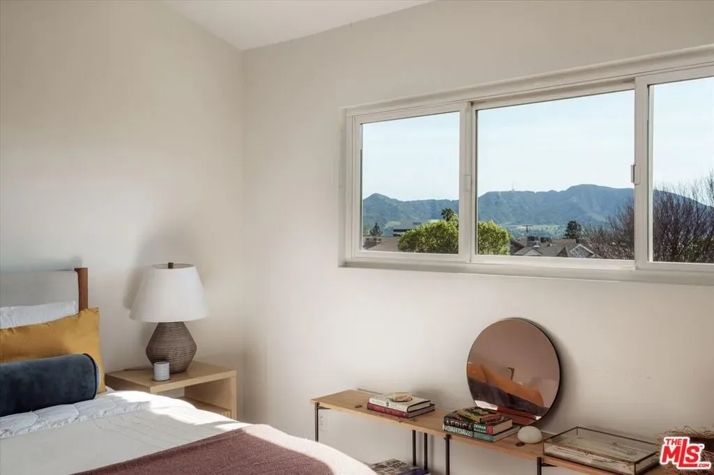 Effortlessly blending modern refinement with everyday comfort, this beautifully updated Burbank residence offers a sophisticated take on condo living in one of the city’s most desirable neighborhoods. Thoughtfully reimagined, the home showcases a series of tasteful upgrades designed to elevate both form and function. A light-filled interior unfolds with newly installed flooring and contemporary lighting that together create a clean, airy aesthetic throughout. The open-concept living and dining areas are anchored by a wall of bookcases, both a design feature and practical touch. Sliding doors lead to a private patio, ideal for morning coffee or relaxed evening gatherings. The well-appointed kitchen is enhanced by a newly added smart refrigerator, seamlessly integrating modern convenience into the home’s polished design. Both bedrooms are generously proportioned, each featuring vaulted ceilings and en suite bathrooms that offer a heightened sense of privacy and scale. The primary suite captures rare, panoramic westerly views of the valley and features a beautifully appointed bath with elevated finishes and substantial closets. A dedicated laundry area and linen closet complete the upper level. Additional highlights include two side-by-side covered parking spaces and additional storage. Discreetly situated in a boutique community of only 8 residences, these townhome style condos offer individual direct access to each unit, lending a sense of ease and privacy. On a gentle sloping street with immense pride of ownership, drive home with views of Angeles Crest mountains and blooming trees along the street. Situated near local favorites such as Porto’s Bakery, Coffee Commissary, Valerie Confections, and the vibrant shops and dining along Magnolia Park, this residence offers a rare opportunity to enjoy turnkey living in the heart of Burbank. Fireplace is decorative.