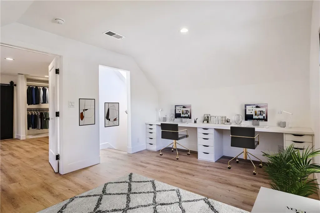 Discover a fully upgraded 2-story craftsman home featuring all the bells and whistles, including brand new Samsung smart appliances, washer/dryer, a dream kitchen with abundant storage, large farmhouse sink, a massive walk-in pantry, central A/C with Nest smart thermostat, an EV charger, Ring doorbell camera, built-in shelves/drawers in closets, mudroom with built-in locker cubbies, hardwired internet with ethernet jacks, high ceilings, ample windows and natural light, large bedrooms, a master suite with an expansive walk-in closet and luxurious master bath with a walk-in shower and freestanding tub, a bonus front den/playroom, a home office with built-in desks (can double as a home gym, playroom or 4th bedroom), a private fenced in front yard, a large back patio, and 4+ parking spaces. All of this is WALKING DISTANCE to Downtown Burbank. Less than a 5 minute drive to Trader Joes, shops and more. Less than 10 minute drive to Target, Whole Foods, the studios and parks. Less than 20 minutes to all the neighboring cities. This is truly the modern gem of Burbank.