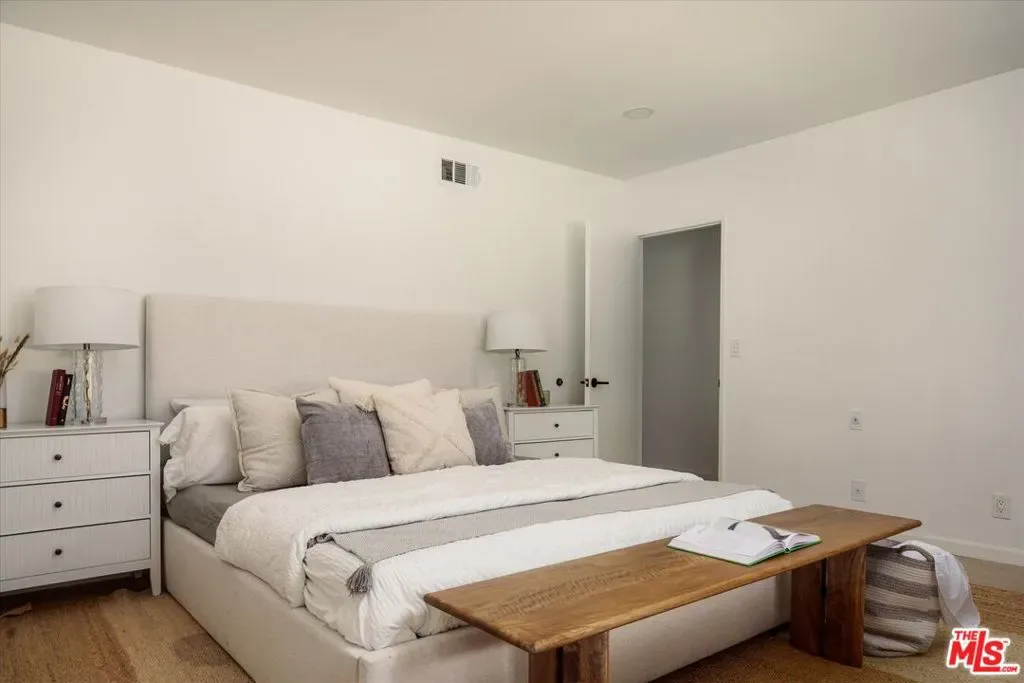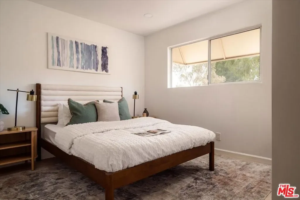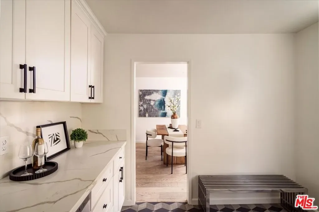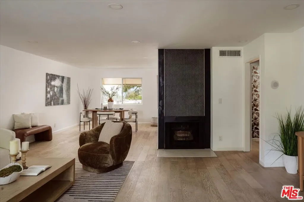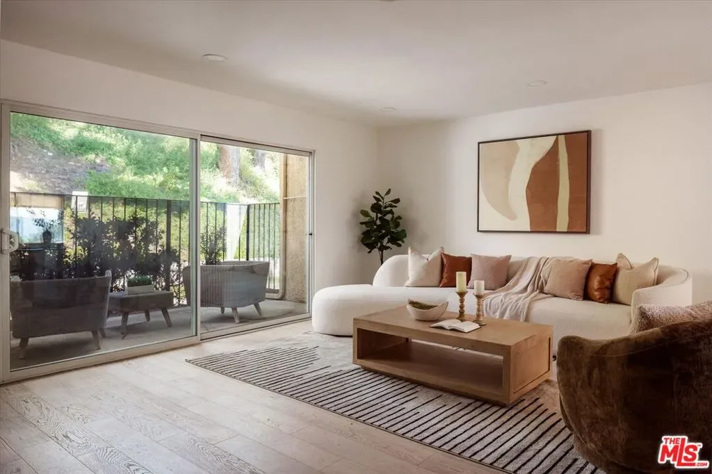 Located in Cabrini Villas in Burbank, this renovated townhouse offers 3 bedrooms and 3 bathrooms along with an exceptional array of community amenities, including 7 pools, 6 tennis courts, a spa, sauna, clubhouse, volleyball court, and a 4-acre park. Set against the foothills of the Verdugo Mountains, the property enjoys a peaceful setting with convenient access to both Burbank and greater Los Angeles. The bright living room features a tiled fireplace and opens seamlessly to a private patio through sliding glass doors, creating an easy indoor-outdoor flow. Recessed lighting and hardwood floors add warmth and a clean, modern finish throughout. The kitchen is thoughtfully updated with geometric tile flooring, marble countertops and backsplash, stainless steel appliances, and crisp white cabinetry. The spacious primary suite includes a walk-in closet with built-in shelving and an en-suite bathroom with a double vanity and glass-enclosed shower. Two additional bedrooms offer flexibility for guests, family, or workspace. A bonus room just off the garage adds valuable flexibility, ideal for use as a den, office, gym, or additional storage. A private 2-car garage with washer and dryer completes the home. Enjoy close proximity to outdoor recreation, dining, and the Burbank Airport, offering a well-rounded and convenient Burbank lifestyle.