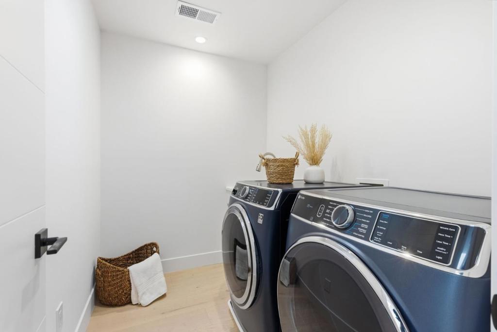 Fully renovated, this modern Burlingame home blends clean architectural lines with warm natural materials and thoughtful functionality. A floating staircase, white oak flooring, and custom linear lighting set the tone for open-concept living spaces that flow effortlessly to the outdoors. The chefs kitchen features porcelain slab surfaces, a waterfall island, dedicated pantry, and a full suite of Miele appliances. Sliding glass doors connect the living area to a private rear deck and landscaped yard, ideal for indoor/outdoor living. The main level includes a guest ensuite bedroom and stylish powder room. Upstairs, a flexible loft space is perfect for an office or lounge. The primary suite offers a private balcony, custom walk-in closet, freestanding soaking tub, oversized shower, and dual vanities with heated and lighted mirrors. Two additional ensuite bedrooms and an upstairs laundry room complete the upper level. Additional features include central heating and cooling, tankless water heater, energy-efficient upgrades, and a detached two-car garage. Located on a tree-lined street close to parks, schools, shops, and dining, this is modern Burlingame living at its finest.