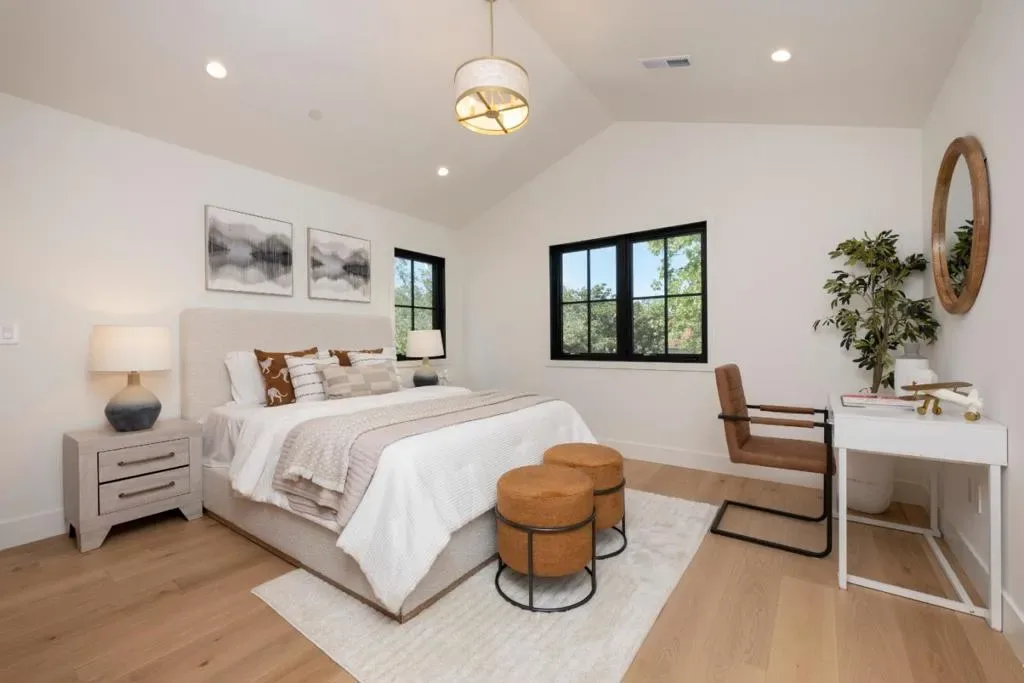 Gorgeous new construction in the coveted Easton Addition, ideally located on lower hillside near top-rated schools, shops, and transportation. The Main house is 4 bedrooms, 4 1/2 baths 3,092 sq. ft with a detached ADU 327 sq. feet for a total of 3,419 sq. feet A grand entry framed by formal landscaping and boxwood hedges opens to a refined interior with a private office or living room, elegant dining with wet bar and wine fridge, and a designer chefs kitchen with large island and premium Thermador appliances, including a 6-burner range with griddle. The kitchen flows into a spacious great room with fireplace. A side entry leads to a mudroom for everyday convenience. Four en-suite bedrooms include a luxurious upstairs primary suite with custom walk-in closet and spa-like bath featuring soaking tub, dual vanities, heated floors, and Hansgrohe fixtures. A separate studio ADU offers Bosch appliances and a full bath. Modern comforts include solar, A/C, EV charging, and pre-wired internet and security. The backyard showcases contemporary pavers and turf for effortless indoor-outdoor living.