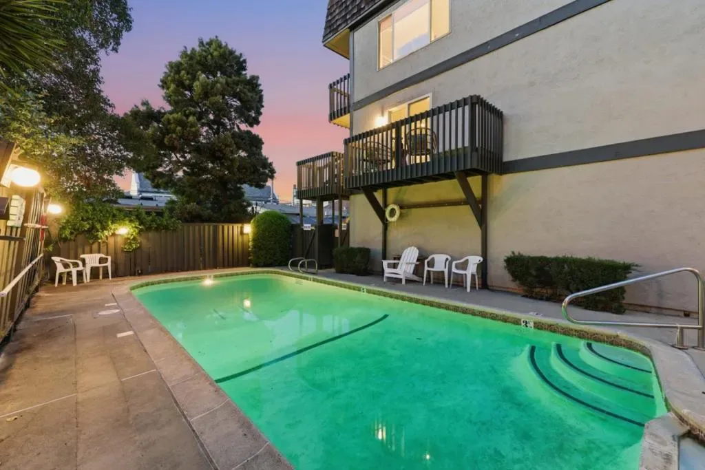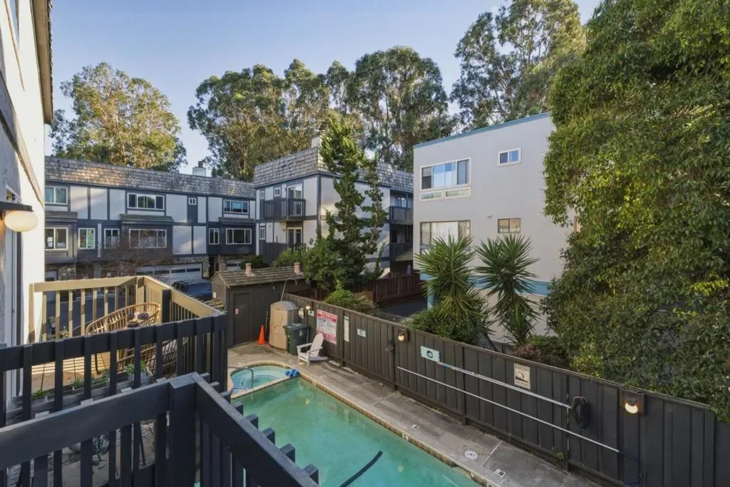 Ideally located just steps from Burlingame Avenue, this updated 2BD/2.5BA bright corner townhome is like a single-family with only one shared wall. Light filled living room w/ fireplace opens to a private patio overlooking the sparkling pool, extending to multiple outdoor spaces designed for indoor-outdoor living w/ an effortless blend of elegance & modern comfort. The designer kitchen impresses with quartz countertops, premium stainless steel appliances, large center island & custom cabinetry, flowing into an inviting dining area & remodeled powder room completes the main level. The luxurious primary suite features dual closets & a spa-inspired bath w/ dual vanities, soaking tub, oversized shower & private balcony. A spacious second ensuite bedroom offers its own beautifully remodeled bath. Highlights include wood flooring, recessed lighting, dual-pane windows, central heat, heated bath floors & an attached 2-car tandem garage with fresh exoxy floors, flexible bonus space, laundry area w/ washer dryer, storage & access to a rear patio yard ideal for outdoor enjoyment. Enjoy resort-style amenities including a pool, spa & guest parking all within a premier LOCATION near Top Rated Schools, dining, boutiques, cafes, Cal Train, HWY 101, SFO & tech hubs. A rare Burlingame offering!