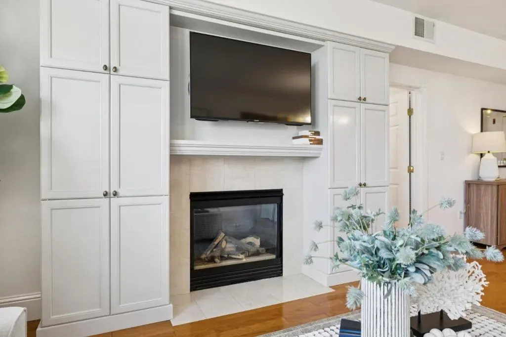 Pure luxury in downtown Burlingame! Rarely available top-floor condominium offering an exceptional blend of style, comfort, and convenience. An impressive entry unfolds with large windows, rich hardwood flooring, designer colors, and an abundance of natural light. The open-concept kitchen is both charming and functional, featuring stainless steel appliances, gas range, breakfast bar, recessed lighting, beverage refrigerator, and double sink. The spacious dining and living areas are highlighted by custom built-in cabinetry, gas fireplace, wall-mounted TV, and access to a private east-facing balcony. The expansive primary en suite boasts vaulted ceilings, two generous closets, and new carpeting. Additional features include central forced air heat, designer lighting, artistic tilework, in-unit laundry, and thoughtful craftsmanship throughout. Built in 2000, this prized Burlingame Mediterranean-style building offers a central courtyard and inviting outdoor spaces for entertaining and relaxation. Deeded parking, storage, and guest parking included. Reasonable HOA fees. Ideally located just blocks from Burlingame Ave. with close proximity to parks, library, recreation, public transportation, Caltrain, BART, SFO and top schools. A great value for those seeking the best of Burlingame!