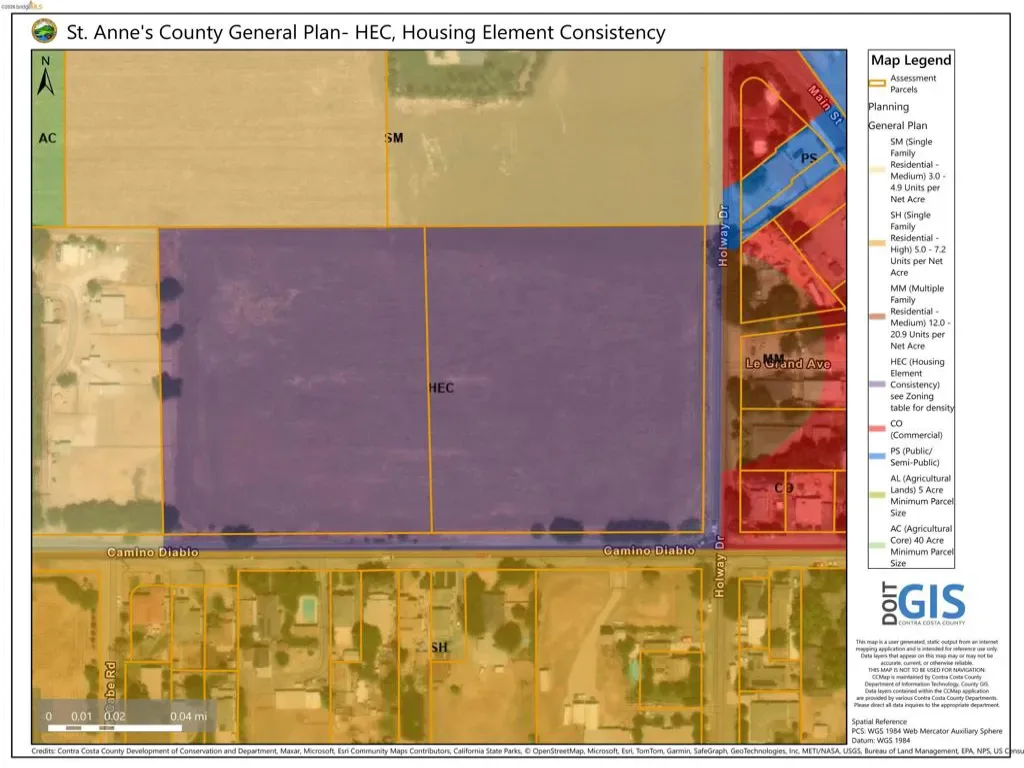 Rare opportunity! The HE-C zoning designation in Contra Costa County is a housing-focused district created to ensure certain parcels can develop residential projects at defined densities in compliance with the county’s Housing Element and California housing law. Residential housing at the specified density for that parcel Accessory dwelling units (ADUs / JADUs), Small residential care facilities, Small family or large family childcare homes, Supportive or transitional housing (small facilities),Each parcel in the HE-C district has a specific density range (units per acre) assigned by the ordinance 17 to 30 units per acre. Check with Contra Costa County on all questions regarding allowable uses.