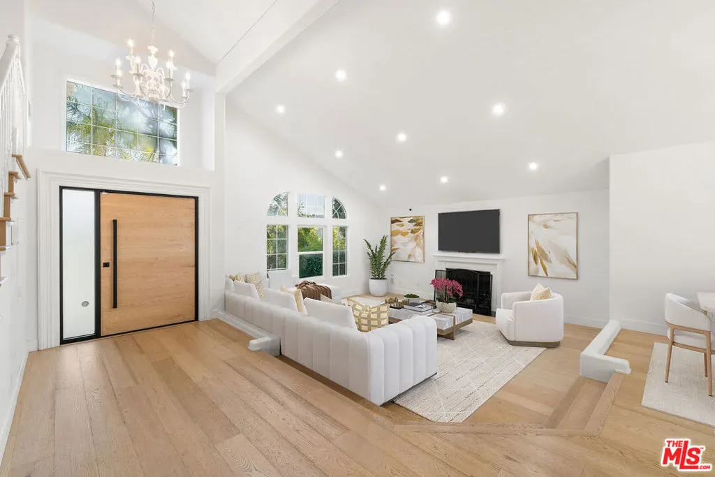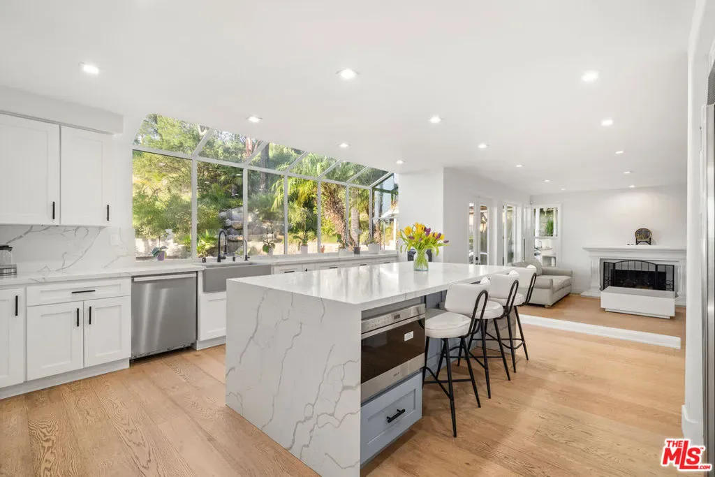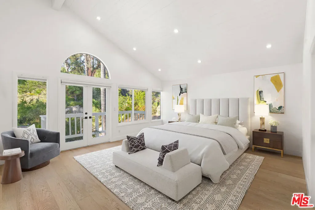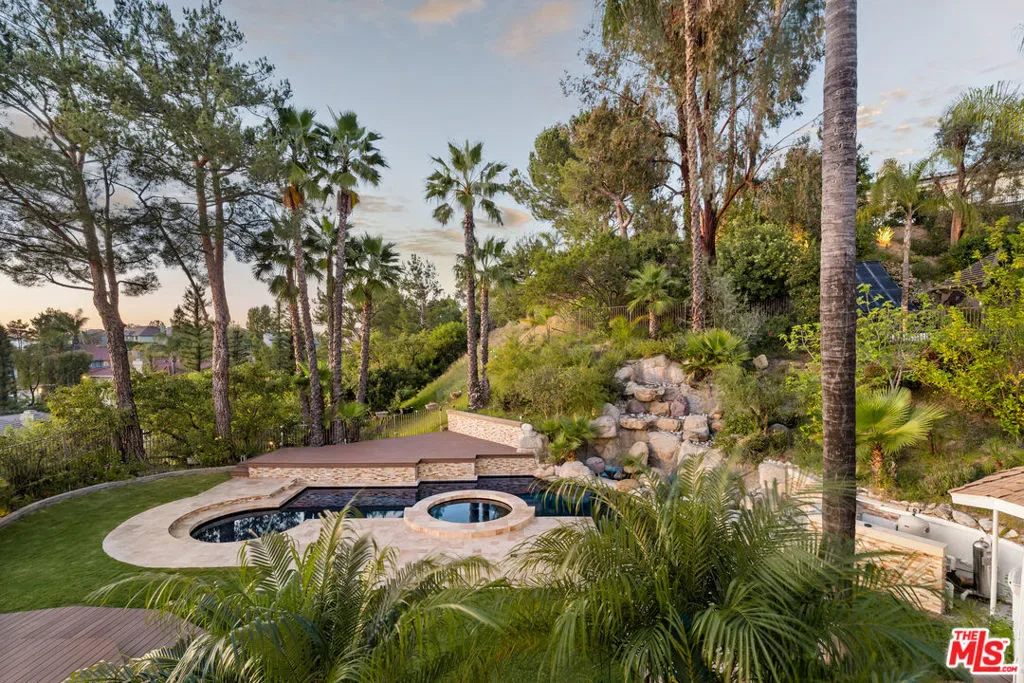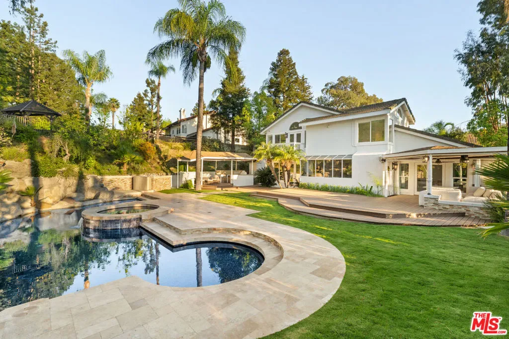 Welcome to your private retreat in Mulholland Heights! Tucked away on a quiet cul-de-sac, this beautifully updated 4 bedroom, 4 bath home offers luxury, comfort, and stunning views. A grand entry with vaulted ceilings leads to bright, open living spaces featuring new French oak floors, fresh paint, and a seamless flow into a chef’s kitchen with high-end appliances, a large island, and garden views.The main level includes a formal dining room and a guest suite with its own bath and direct outdoor access. Upstairs, the spacious primary suite boasts a fireplace, balcony, dual closets, and a newly renovated spa-like bathroom. Additional bedrooms share a stylish updated bath. A converted garage adds a 1 bed, 1 bath guesthouse with officeideal for visitors or rental income . The backyard is an entertainer’s dream, complete with a pool, spa, waterfall, outdoor kitchen, and sweeping mountain views. Close to parks, trails, shopping, dining, and top-rated schools. ADU is not permitted