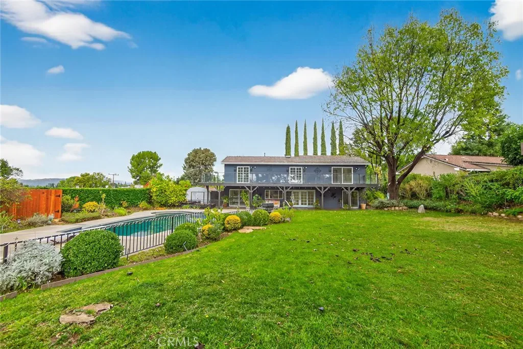 Located on one of Mulwood’s premier cul-de-sac streets, this super clean 5BR/3BA home offers an exquisite yard space—larger and far more usable than most, with a massive grassy lawn, beautiful saltwater pool, covered patio, mature landscaping, and wide open views that create a wonderfully spacious outdoor setting. If you are seeking an outdoor entertainment space this is the home you have been looking for. Inside the freshly updated interior offers high ceilings in a large living room complete with fireplace. There is bright open feeling throughout. The kitchen with new appliances opens to the family room for easy, connected flow. Both access the rear yard through glass sliders. The dining area is great for large dinner parties or can be used as additional flex space. The large primary suite features a private view deck with mountain vistas and excellent closet space. All bedrooms have great light and nice closet space. Additional highlights include new paint, stone counters and tile, a 3-car garage, plenty of storage, walking distance to all three Calabasas schools (K–12), close to the Calabasas commons and a quick 15-minute drive to Malibu.