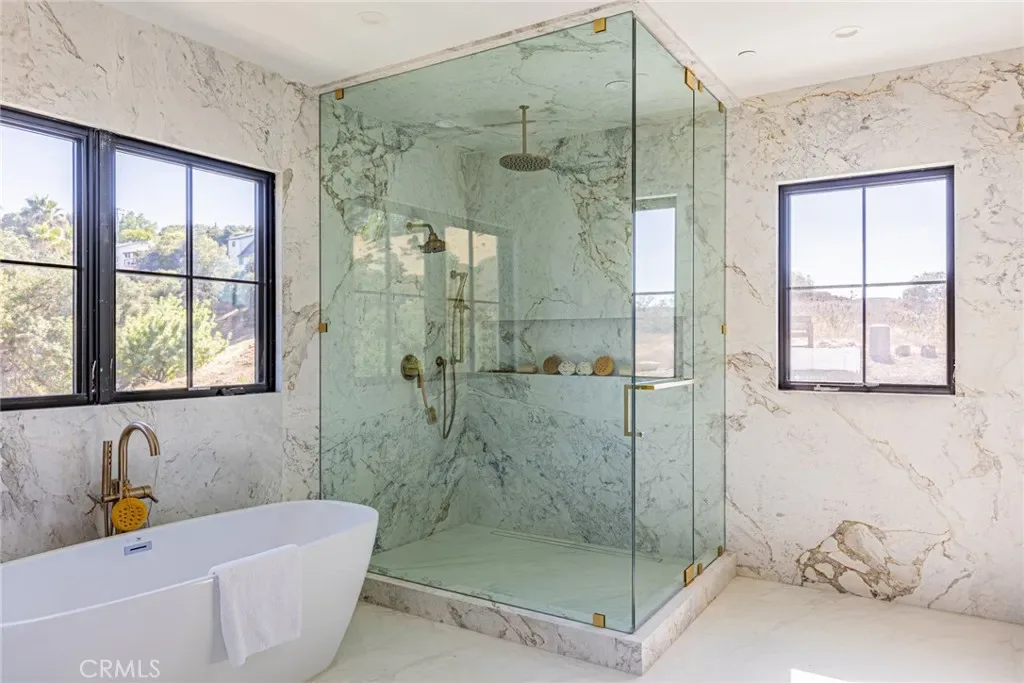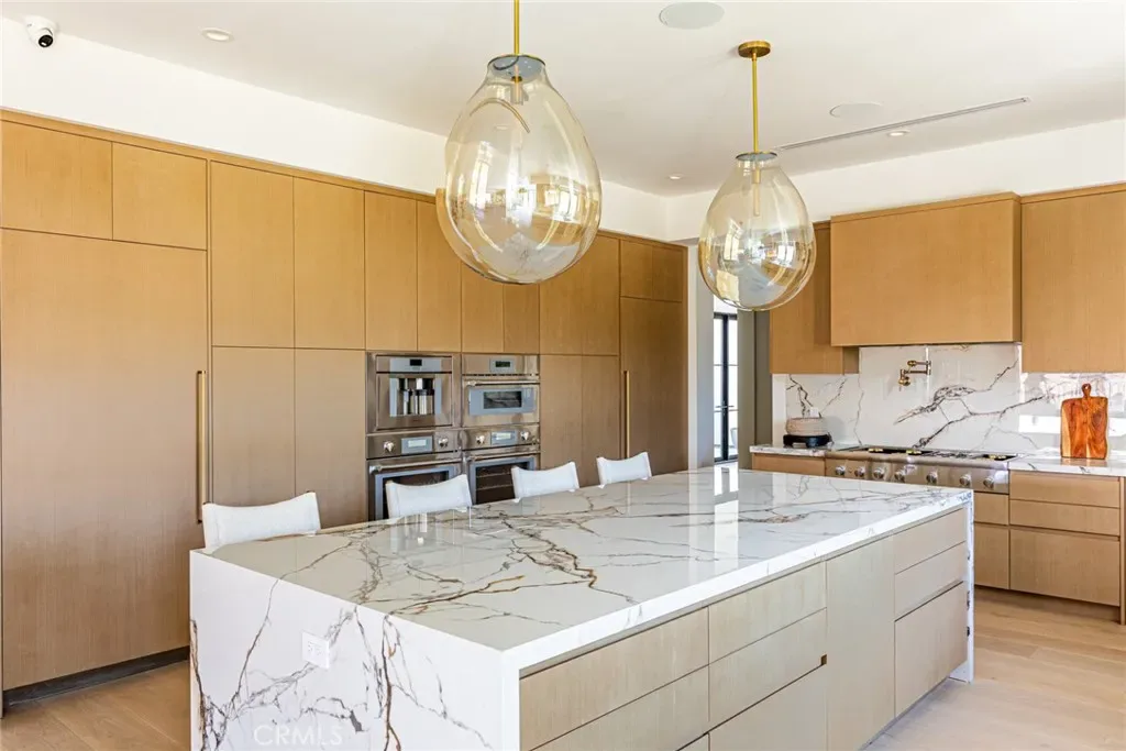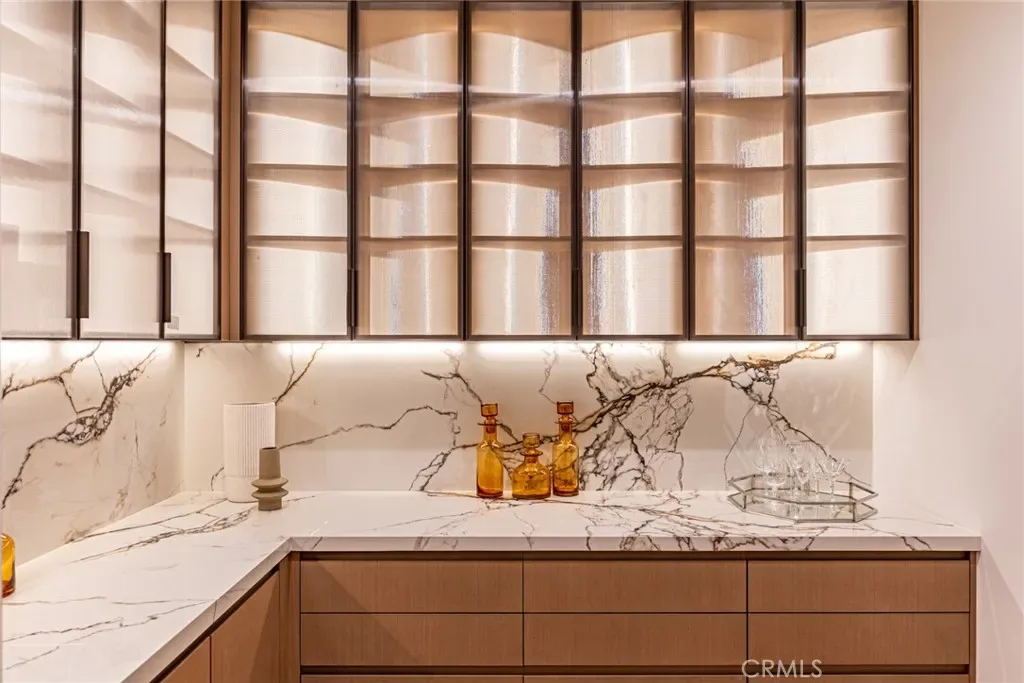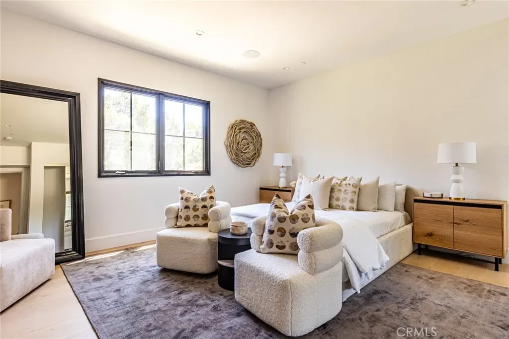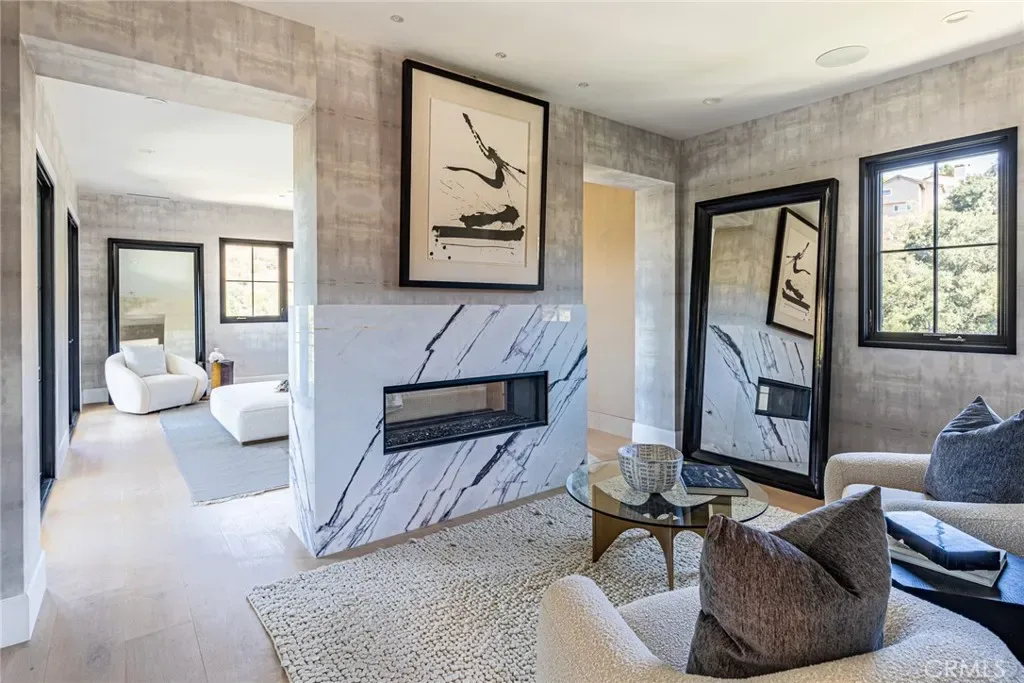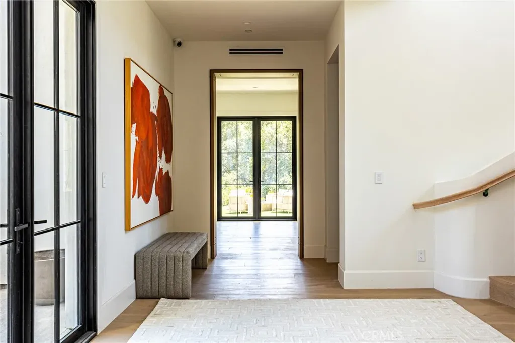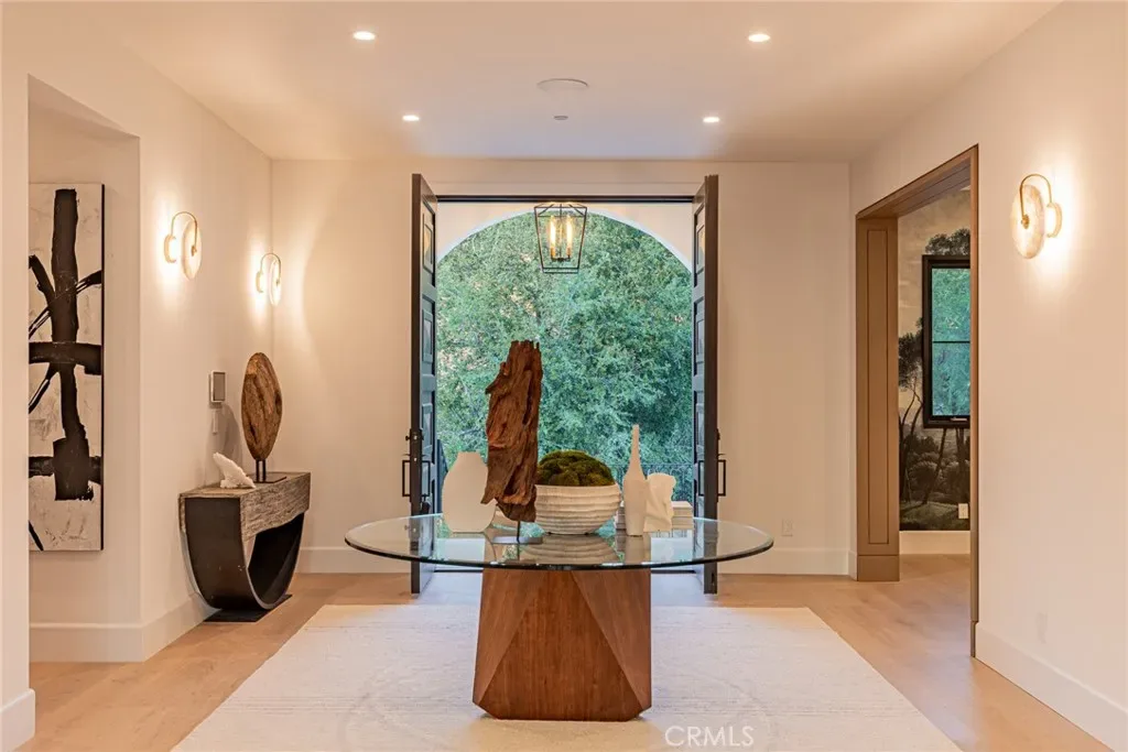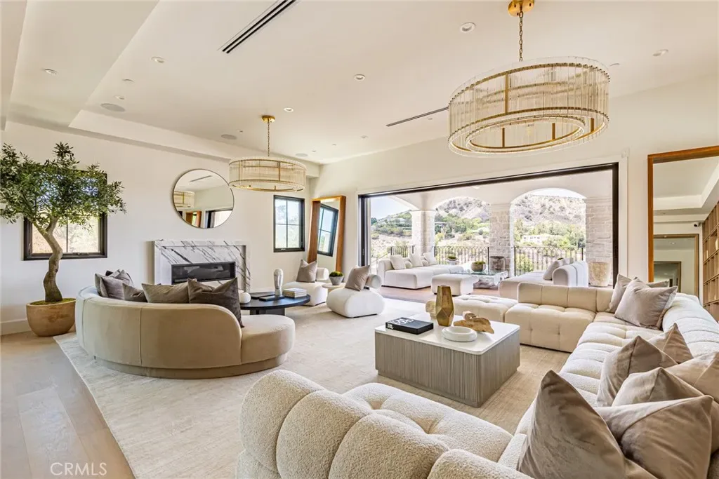Perched atop a secluded 4.5-acre knoll in the heart of Calabasas, this newly built 12,140-square-foot contemporary Mediterranean estate captures sweeping canyon and mountain vistas while delivering a rare sense of privacy and scale. Designed for both elevated entertaining and effortless daily living, the residence offers 6 generous bedrooms, 7 luxurious baths, and a beautifully balanced floor plan that blends openness with intimacy. Sun-drenched interiors are defined by soaring ceilings, walls of glass, and impeccable custom finishes that reflect refined craftsmanship at every turn. Expansive living and dining spaces flow seamlessly to the outdoors, creating a true indoor-outdoor lifestyle. A private, state-of-the-art theater and sophisticated bar lounge set the stage for unforgettable gatherings, while multiple family and entertaining areas provide flexibility and comfort. Surrounded by mature oak trees and lush, natural landscaping, the grounds feel like a private retreat. An expansive deck nestled beneath a canopy of oaks offers the perfect setting for al fresco dining, sunset lounging, or tranquil mornings overlooking the hills. A rare and distinguished offering, this estate masterfully blends contemporary sophistication with Mediterranean warmth in one of Calabasas most coveted and exclusive enclaves.