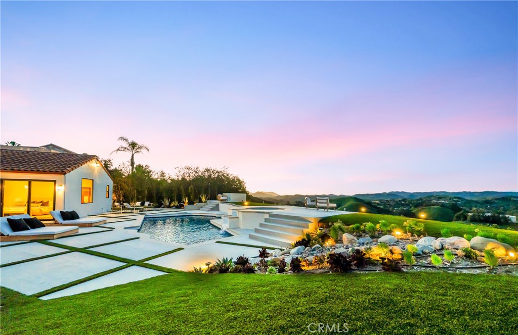 Spectacular 180 Degree VIEWS!!! Luxury Awaits! Renovated and Stunning!! This Calabasas Dream Home Is Located In The Guard Gated Community of Westridge! This Rare, ONE STORY Beauty Shows Like A True Model!!! The Home Features An Expansive Open Layout, Jaw Dropping Panoramic Views Of Calabasas and Beyond, Fine Finishes Including A Brand New Chef’s Kitchen Equipped With State of Art Viking Appliances, White Quartz Counter Tops, Large Center Island, Sleek Cabinetry & A Breakfast Nook Overlooking The Entertainer’s Yard. This Home Has An Unforgettable Warm, Modern Vibe. Complete with Wood Floors, LED Lighting, A Fantastic Indoor/Outdoor Living Space, Multiple Fireplaces, New Windows & Doors, Oversized Living Room-Perfect For Entertaining, A Primary Suite Fit For A King, Spa Style En-Suite, Custom Walk-In Closet+++ There Is A Junior Master Suite Easily Used As A Theater Room, Poker Room & More With Fantastic Double Doors Opening To The Loggia! Find A Designated Office, And Additional Spacious Bedrooms, A Separate Laundry Room, 3 Car Garage & More. Step Outside & Enjoy The Feeling Of 5 Star Serenity! This Massive Flat Lot Features A Pool, Spa, Built-In BBQ, Fire Pit, Multiple Lounge Areas & Exudes Resort Vibes. Enjoy The Spectacular Views From Dusk Till Dawn! Walking Distance To The Calabasas Lake, Commons, Cafe’s & Boutiques.