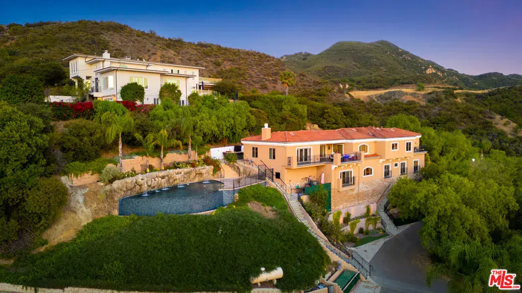 Gated Estate | Fully Landscaped | Unforgettable Views Tucked into the tranquil beauty of the Santa Monica Mountains, this estate is a rare findblending architectural elegance with nature’s finest views. Perched just off the iconic Mulholland Highway and resting on nearly an acre of fully landscaped land, this 4,579 sq. ft. residence offers an unmatched lifestyle.Enjoy some of the most breathtaking views in the entire Santa Monica Mountain range, with sunsets off the patio that will truly take your breath away.Originally built in 2008, the home features a brand new negative-edge pool and spa oasis, complete with cascading waterfalls for a true resort-style experience. The outdoor space is an entertainer’s dream, boasting a fully equipped kitchen with a built-in pizza oven, high-end grill, and prep areaall set against a stunning mountain backdrop. Inside, the chef’s kitchen is outfitted with a Viking 8-burner stainless steel range and an oversized center island, perfect for hosting and everyday living. Throughout the home, you’ll find beautiful hardwood flooring, along with rich alder wood finishes including custom casement windows, French doors, interior doors, and baseboards.The main level offers light-filled living areas with a southwest-facing orientation, while four spacious bedrooms are located on the lower level. There is also ample room to further customize the home to your vision. Located just seconds from Viewpoint School and within the award-winning Las Virgenes Unified School District, this gated estate is ideally positioned just minutes from Malibu’s beaches and the Calabasas Commonsoffering the perfect blend of natural serenity and everyday convenience.