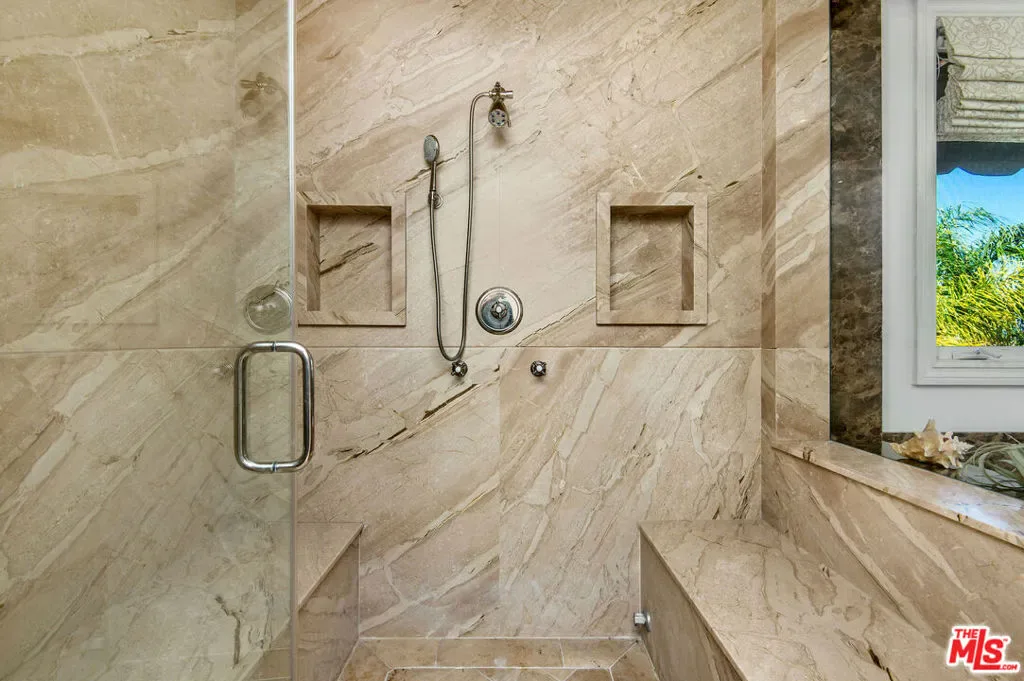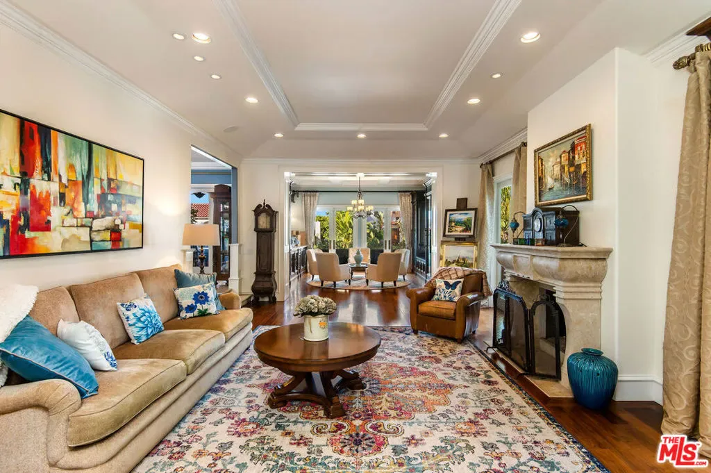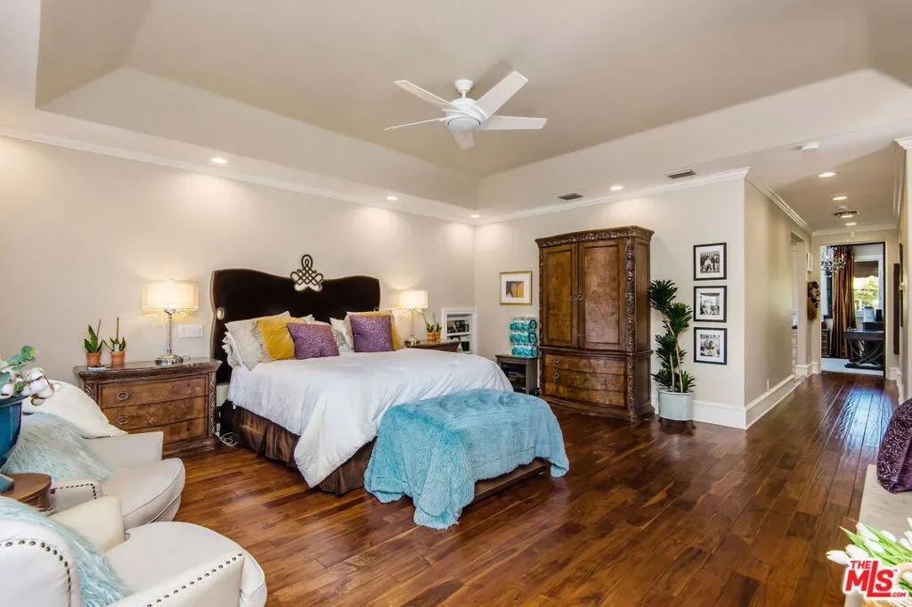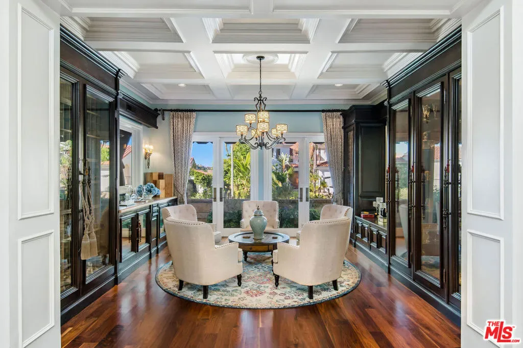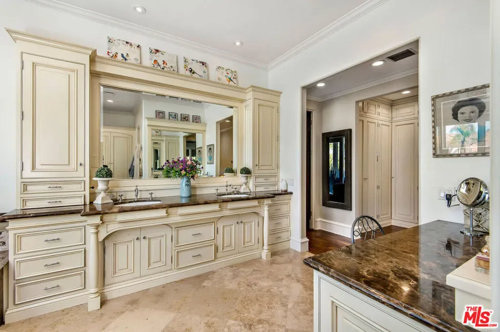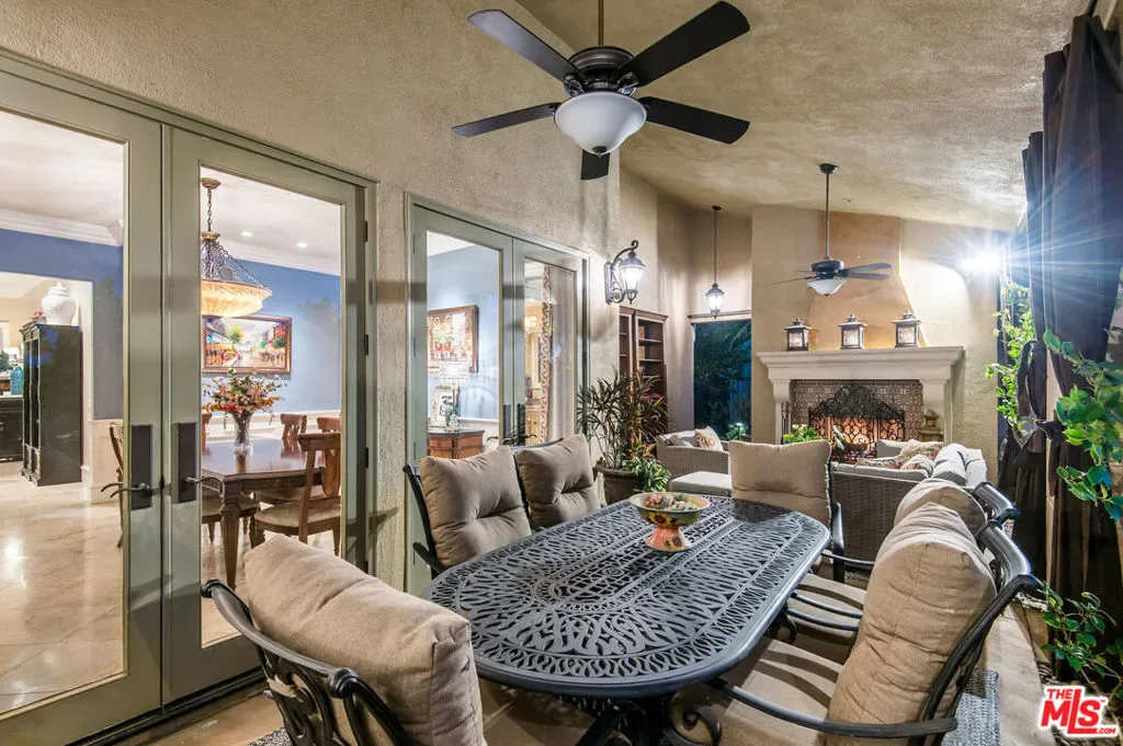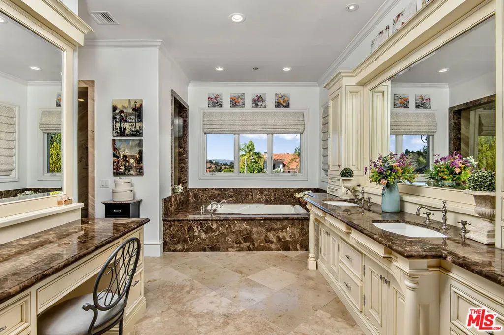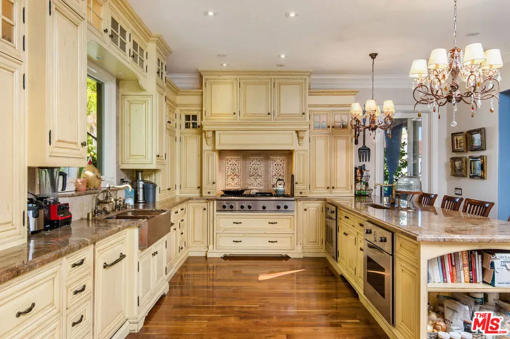 Tuscan Grandeur Meets Calabasas ChicStep into a masterclass of timeless elegance. This breathtaking villa blends Old World charm with modern scale, featuring an expansive open floor plan anchored by rich walnut and limestone flooring. Every inch is illuminated by sophisticated designer lighting, creating a warm, museum-quality glow throughout.The culinary wing is a true showstopper: a Chef’s kitchen featuring professional stainless steel appliances, granite island with breakfast bar, and the rare convenience of dual full-size dishwashers. Host unforgettable evenings in the formal dining room, where a coffered ceiling and a custom temperature-controlled wine closet set the stage for your finest vintages.The primary suite is a sanctuary of its own, offering a fireplace-warmed seating area and a marble-clad bath with an oversized soaking tub. Outside, the “Resort Life” awaitsvine-covered terraces, a stone wrap-around patio, and a sparkling pool framed by mature, lush gardens.