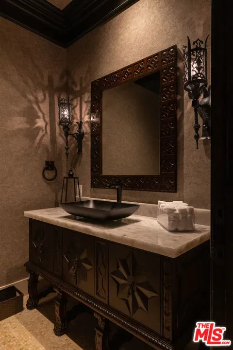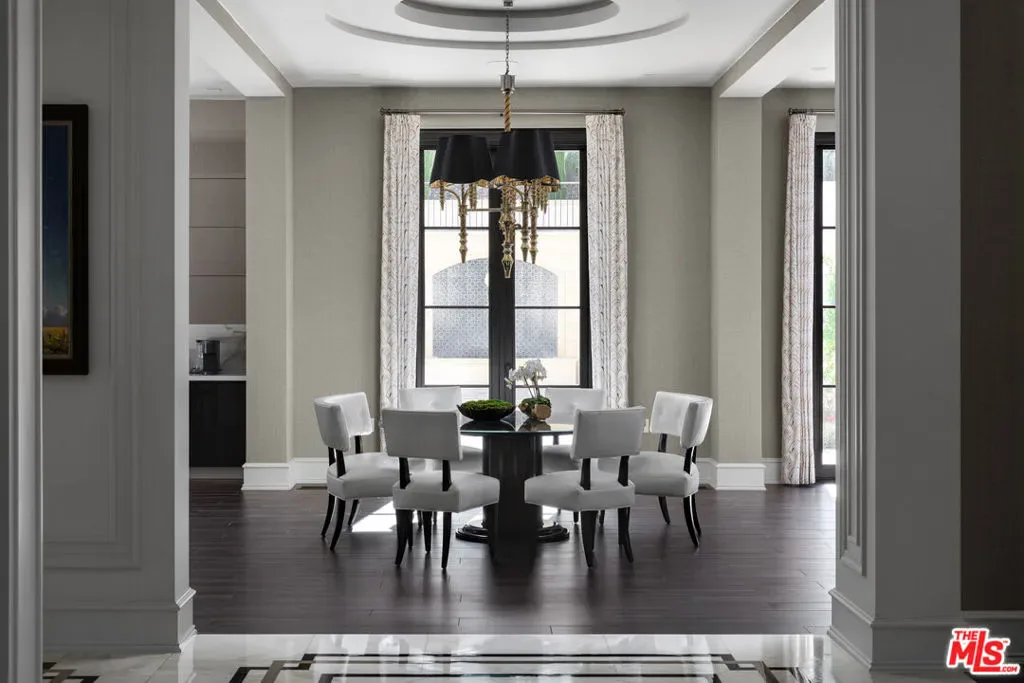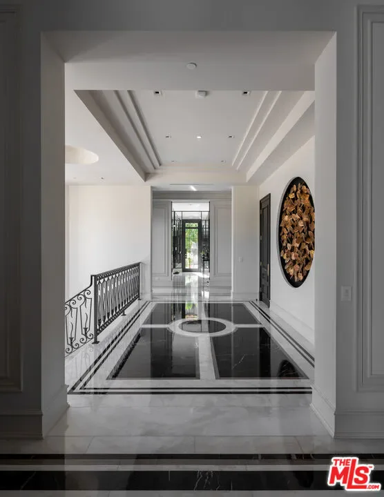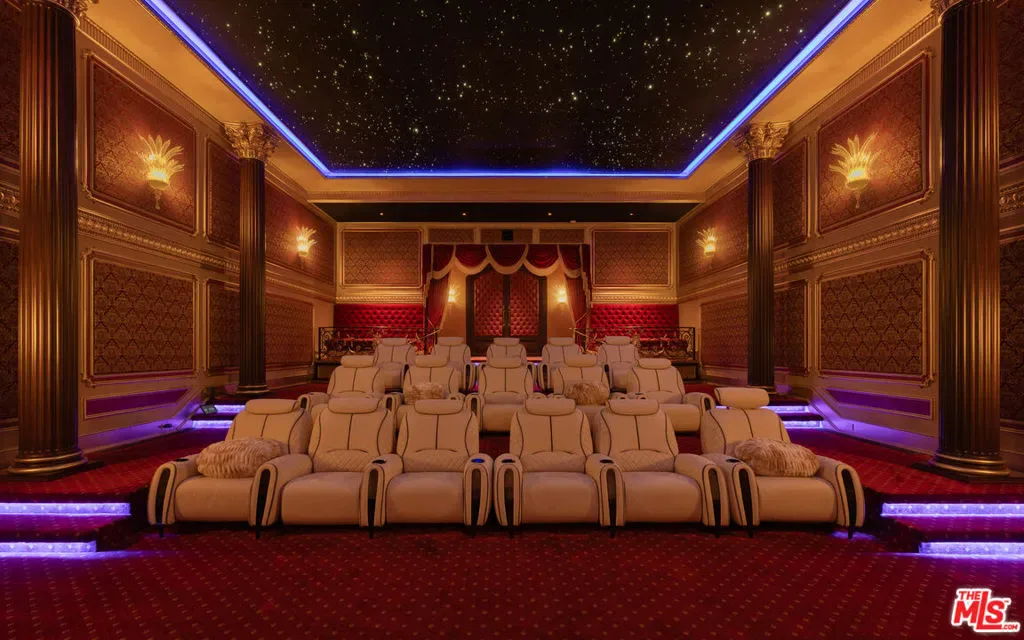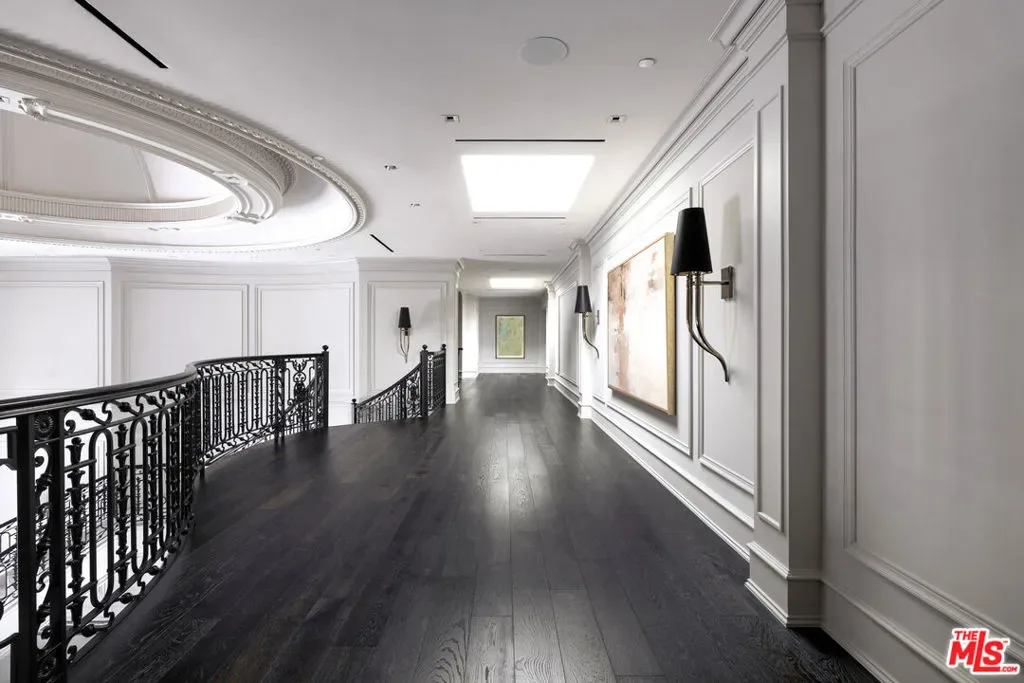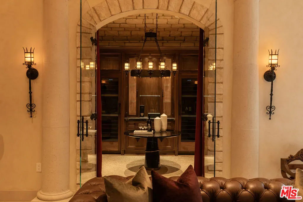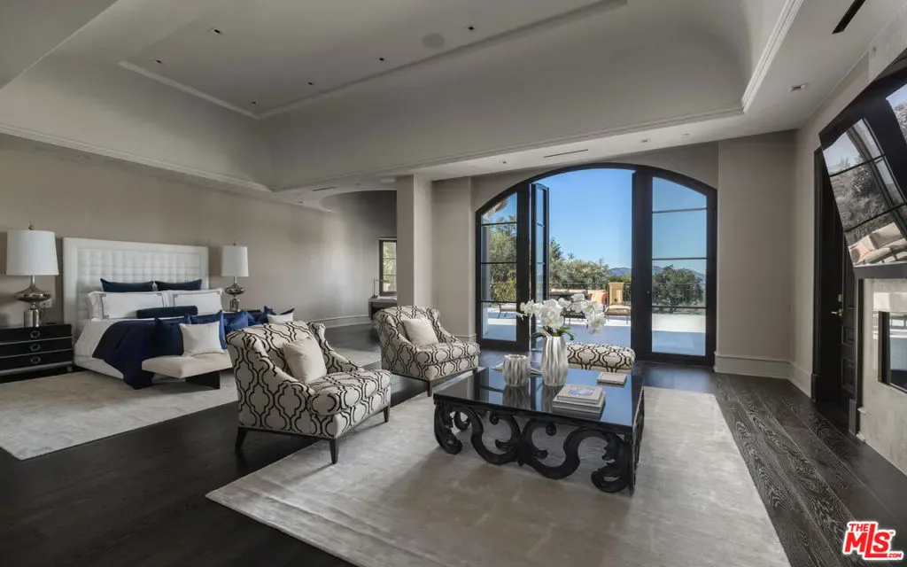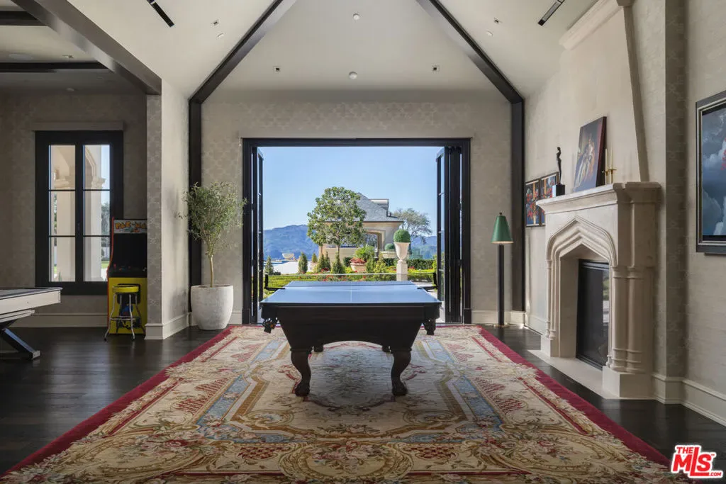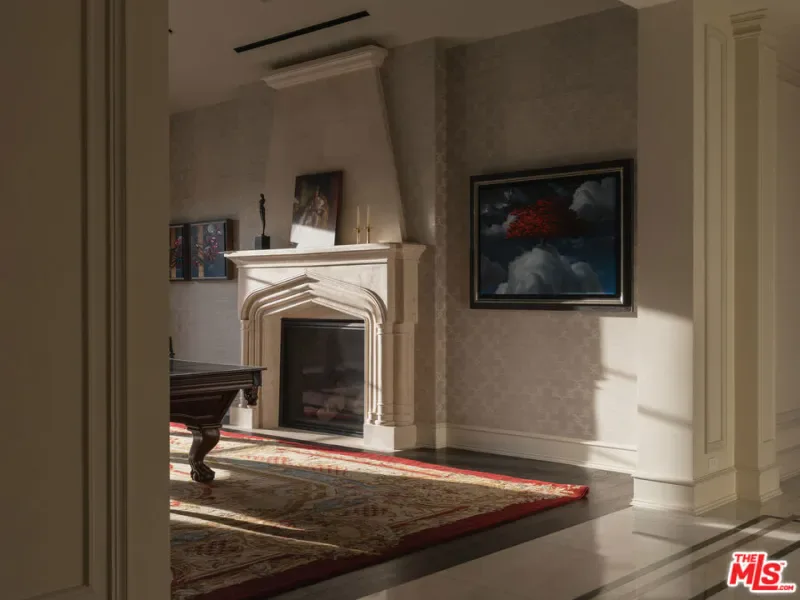 Behind the double gates of The Estates at The Oaks, this majestic residence offers rare privacy and sweeping, unobstructed views across the rolling hills of Malibu. Set at the end of a long, quiet driveway, and spanning over two acres, the property evokes a European country estate, thoughtfully built over more than a decade with exceptional care and intention. Traditional craftsmanship is showcased through hand-selected stone, custom wall treatments, intricate moldings, and layered tile work, with bespoke wallpaper, paneling, and millwork sourced from JP Weaver Company. The architecture feels timeless yet current, anchored by a grand arrival court with a scaled stone fountain and an entry aligned perfectly with the horizon. Inside, soaring domed ceilings, wide hallways, and sweeping bronze staircases frame endless vistas and create a striking sense of arrival. The main level unfolds through a seamless blend of formal and informal spaces. A monumental entry leads to an elegant lounge with a Spanish limestone fireplace opening to the gardens, while a Louis XIV inspired dining room with custom French wall coverings overlooks the grounds. The chef’s kitchen flows into the family room, bar, and fireside gathering areas, finished with refined European details and a full suite of Miele and Wolf appliances. Dual library offices with concealed bath and Minotti cabinetry, a vaulted game room opening to outdoor entertaining areas, three guest suites with outdoor access, and a glass-wrapped gym with steam room and massage suite complete the level. Wraparound terraces extend the living spaces outdoors, ideal for both entertaining and quiet retreat. Upstairs, five bedroom suites surround a grand landing, including an exceptional primary suite with vaulted ceilings, a private living room, domed office, dual spa-caliber bathrooms, expansive closets, and a sweeping terrace with outdoor fireplace overlooking Malibu State Park. A secondary primary offers similar scale with its own foyer, stone fireplace, soaking tub, and private terrace. The lower level features a 5,225 sq. ft. air-conditioned garage, a French-inspired cinema with fiber-optic ceiling and Dolby Atmos sound, an entertaining lounge with bar, wine cellar and tasting room, and a private beauty salon. The grounds unfold as a series of curated experiences, including tennis, pickleball, and bocce courts, a solar-heated ozone pool, dramatic fire pits, and a fully equipped outdoor pavilion with dual BBQs, pizza oven, bar, and integrated bathrooms. A vegetable garden adds a quieter rhythm to the property. Above it all, an elevator-accessed rooftop deck offers uninterrupted 360-degree views across the entire community. The estate is engineered for longevity and sustainability with advanced HVAC, whole-home water purification, solar power, fire-resistant construction, a full backup generator, and a triple-phase electrical system guided by Vastu and feng shui principles for balance and clarity.