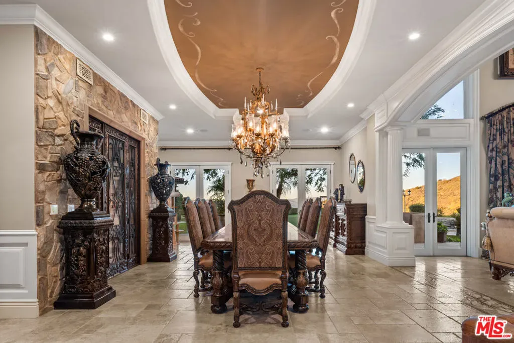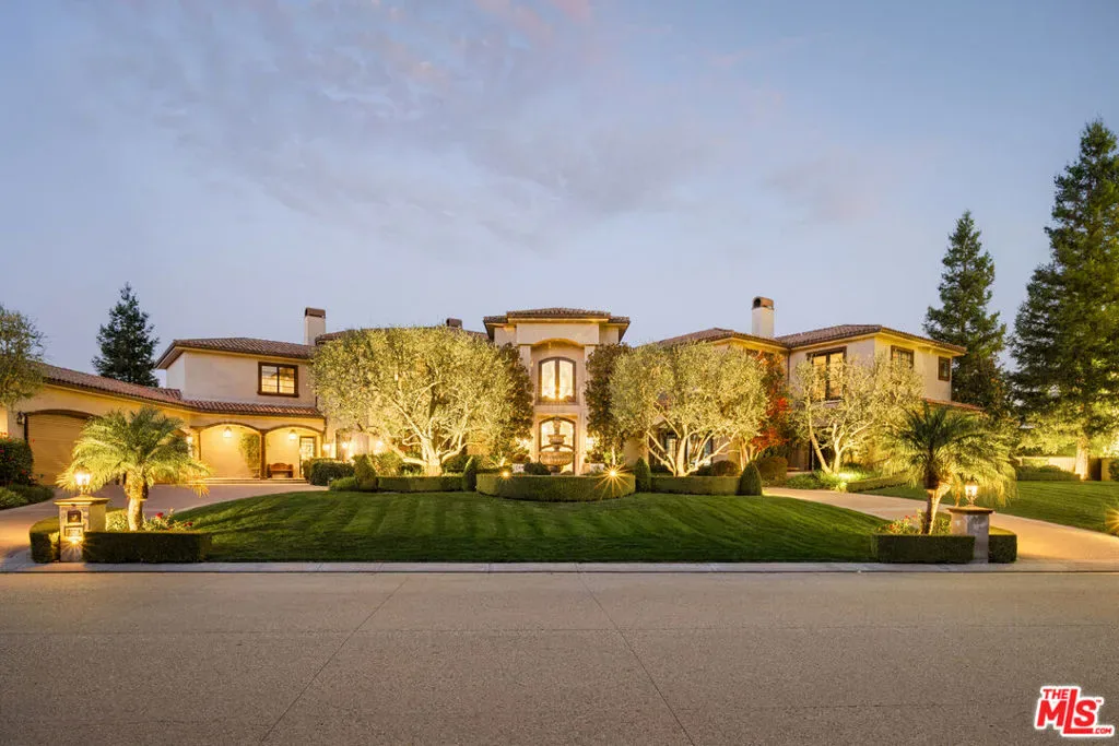 Behind the coveted secondary gates of The Estates at The Oaks, this exceptional custom residence offers unmatched privacy, sweeping mountain and canyon views, and a rare opportunity to own one of Calabasas’ premier properties. Set on an expansive, beautifully landscaped lot, the home blends timeless design with resort-style amenities throughout. A grand double-height foyer introduces a warm, open layout ideal for both everyday living and elevated entertaining. The main level features formal living and dining rooms, a lounge wing with game room, full bar, and a private theater, along with a chef’s kitchen anchored by Viking appliances, a large island, and a cozy fireplace.Upstairs, the serene primary retreat enjoys a fireplace, large walk-in closet, spa-inspired bath, and a private balcony framing spectacular view lines. Outside, the estate transforms into a true private compound complete with a beach-entry pool and spa, generous grassy areas, a putting green, sports court, two outdoor fireplaces, fire pit, and a full barbecue pavilion with smoker and pizza oven. Additional amenities include a 1,000-bottle temperature-controlled wine room, gym with massage space, elevator, and a climate-controlled, fireproof 8-car garage perfect for collectors.