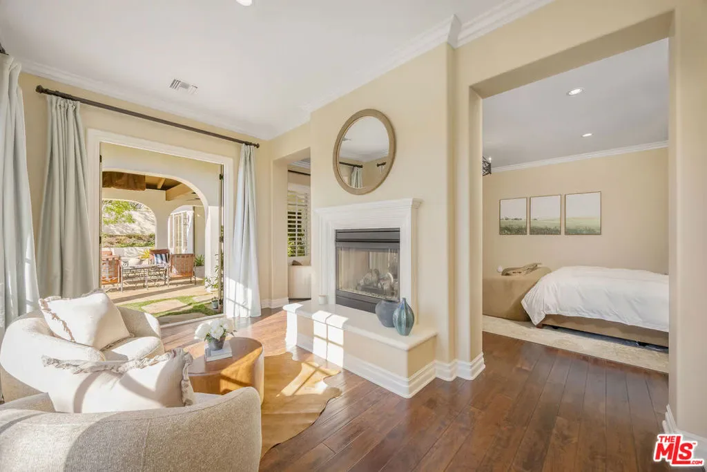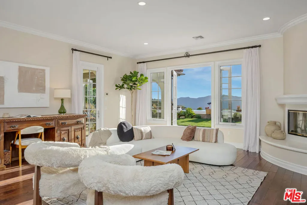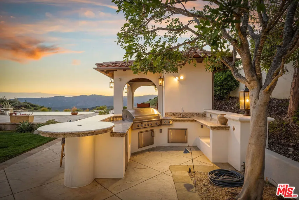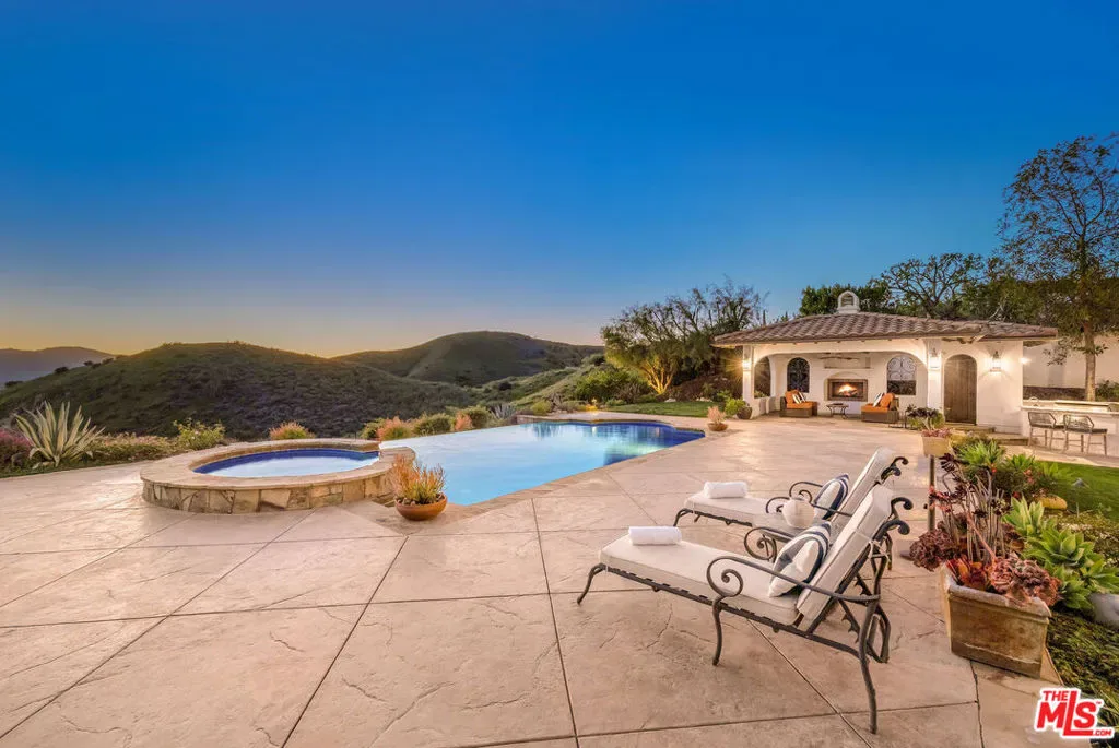 Set behind the gates of one of Calabasas’ most coveted guard-gated communities, this exceptional single-story estate offers an uncompromising expression of privacy, scale, and refined California elegance. Perfectly positioned against the protected backdrop of the Santa Monica Mountains Conservancy, the property commands unobstructed views and a rare sense of tranquility. A romantic courtyard entry introduces the home with understated sophistication, where custom wrought iron details and a statement fireplace create a memorable arrival. Inside, soaring vaulted ceilings, oversized architectural openings, and expansive French doors define the interiors seamlessly blurring the line between indoors and out while flooding the residence with natural light. Designed for effortless living, the floor plan unfolds with intention and balance, anchored by a secluded primary suite featuring its own fireplace, private sitting lounge, and serene mountain vistas. Each secondary bedroom is ensuite, thoughtfully scaled, and designed for ultimate comfort. Multiple fireplaces throughout add warmth and timeless character.At the heart of the home, a chef’s kitchen pairs elevated design with professional performance an oversized island and top-tier appliances creating a natural gathering space equally suited for intimate mornings or sophisticated entertaining. The grounds evoke a private resort experience, complete with a sparkling pool and spa, outdoor culinary pavilion, and a detached cabana with fireplace and outdoor bath. A separate guest suite with its own entrance offers elevated flexibility for extended stays or private accommodations.Residents enjoy access to exclusive community amenities including concierge-level services, a private clubhouse, fitness center, tennis and pickleball courts, basketball court, resort-style pool, and curated recreation areas all within the highly regarded Las Virgenes School District. A rare offering defined by quiet luxury, architectural grace, and an unrivaled sense of place.