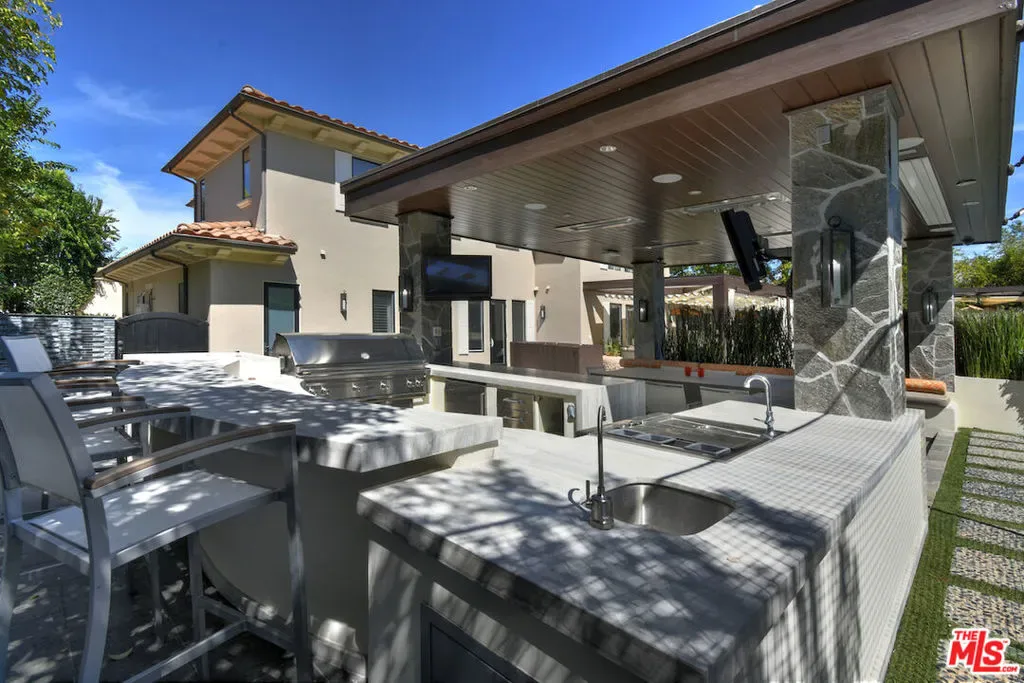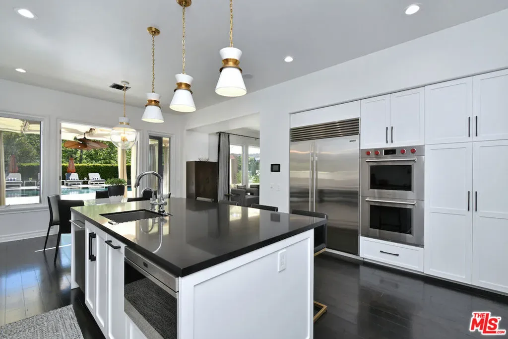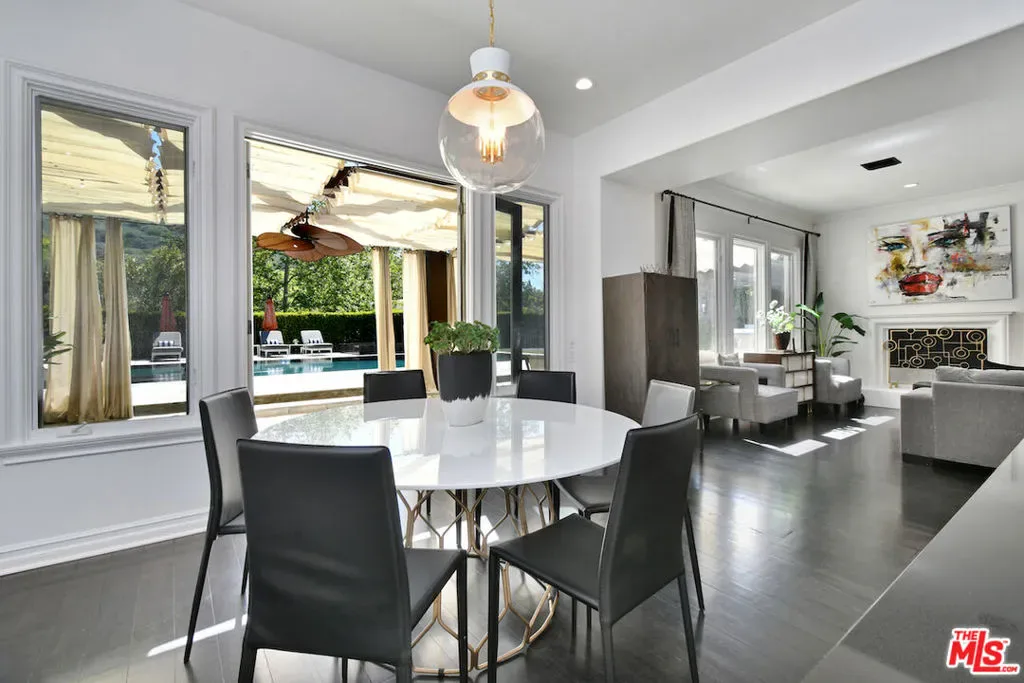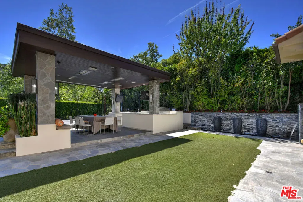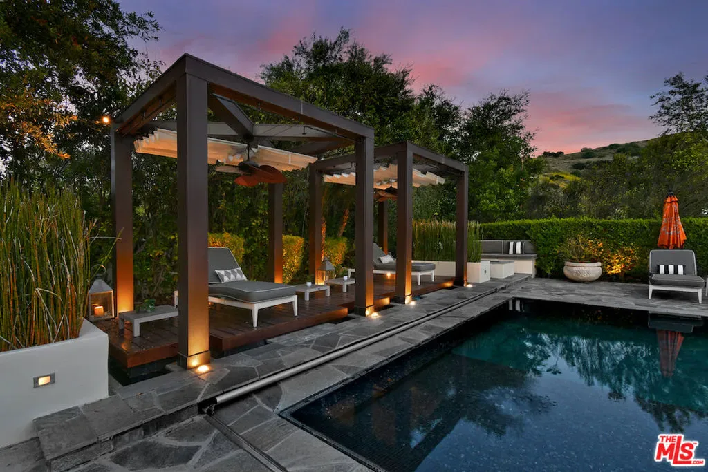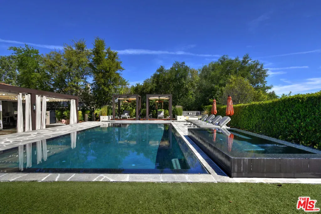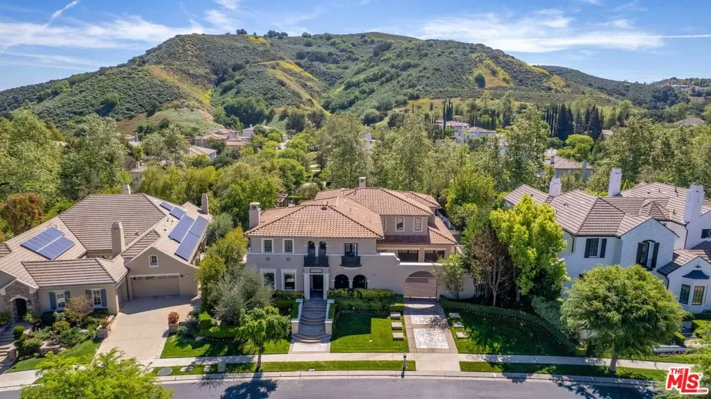 Located on a rare, tree-lined cul-de-sac within The Oaks of Calabasas, one of Southern California’s most prestigious 24-hour guard-gated communities, this exceptional estate offers a level of privacy and tranquility seldom found. With no through traffic, the setting is remarkably quiet and serene, creating a true sanctuary environment. Set against unobstructed panoramic views of the Santa Monica Mountains, the home captures breathtaking natural beauty from sunrise to sunset, elevating everyday living into a resort-like experience. Spanning approximately 6,000 square feet on an expansive 22,000+ square foot lot, this stunning two-story residence offers 5 bedrooms and 7 bathrooms, seamlessly blending timeless architecture with elevated contemporary design. At the heart of the home is a state-of-the-art chef’s kitchen featuring premium Wolf appliances, a generous center island, and a sunlit breakfast area all flowing effortlessly into the spacious family room with fireplace and French doors that open to the outdoor living spaces. The formal living room showcases soaring ceilings and a fireplace, while the elegant dining room provides the perfect setting for both intimate dinners and large-scale entertaining. Thoughtfully designed for both comfort and functionality, the home also features a charming courtyard with fireplace, executive office, gym area, utility room, and a private downstairs suite with its own living area ideal for guests or extended stays. Upstairs, a grand landing leads to an additional family room. The luxurious primary suite is a true retreat, complete with a sitting area and fireplace, a spa-inspired “Four Seasons” style bathroom with oversized shower, and a bespoke walk-in closet. Three additional en-suite bedrooms offer generous proportions and refined comfort.The resort-style backyard is a true showpiece, evoking the ambiance of a private Thai-inspired Four Seasons-style retreatperfect for both vibrant entertaining and peaceful family evenings. A stunning zero-edge pool seamlessly blends into the surrounding landscape, complemented by an oversized spa with high-performance jets and multiple water features enhanced by sophisticated lighting for a dramatic nighttime atmosphere. Designed for elevated entertaining, the outdoor pavilion features a fully equipped kitchen with premium Wolf appliances that flows seamlessly to a built-in Lynx Grills barbecue, creating an effortless transition between indoor and outdoor living. Two cabanas designed as aquatic lounges, a fire pit, sport court, and multiple lounge areas complete the grounds, offering a series of distinct experiences within one extraordinary setting. This is more than a home it is a private resort, a retreat, and a lifestyle defined by elegance, comfort, and unforgettable moments.