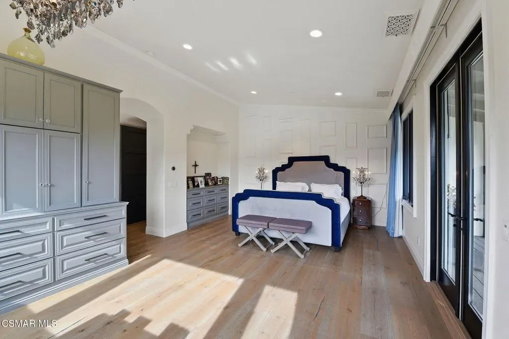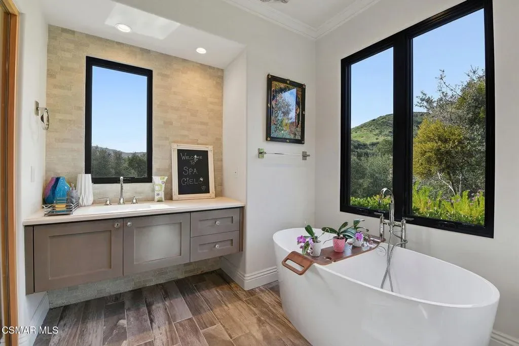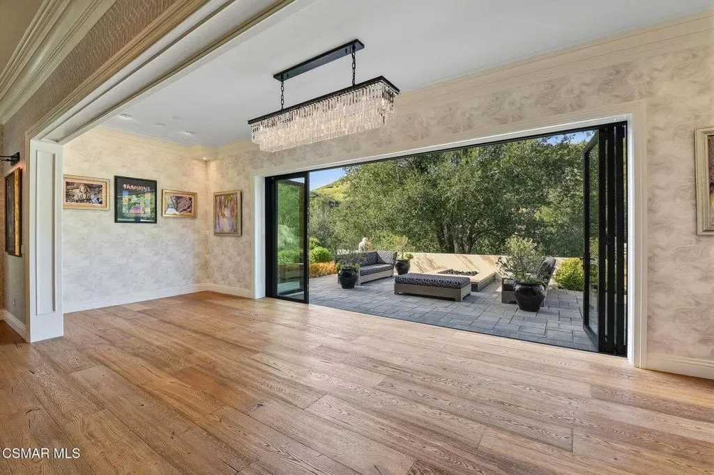 Within the ultra-private, enclave of Country Ridge–comprised of only seven distinguished estates–this exceptional residence offers a rare blend of discretion, design, and natural beauty. Set on 8.74 acres of scenic mountainside terrain, the property provides a meaningful sense of space and separation while remaining thoughtfully integrated into its surroundings. Ideally located just moments from the 101 freeway for effortless access, yet tucked quietly behind two separate gates–including its own private entry–the estate delivers the level of privacy sought by those who value true retreat.Resting against the foothills of the Santa Monica Mountains, the home enjoys a dramatic natural backdrop, where rolling landscape and canyon views create a feeling of calm and permanence. The setting offers the beauty and serenity of mountain living while remaining close to the refined dining, boutiques, and conveniences of Calabasas, as well as the coastline of Malibu.Designed as a sanctuary, the estate was conceived to foster tranquility and elevated daily living. The grounds unfold organically around the residence, with serene Zen gardens, curated outdoor spaces, and peaceful pathways that complement the natural topography. Rather than overwhelming, the acreage enhances privacy and frames the home in a way that feels intentional and harmonious.Inside, the interiors–masterfully curated by a renowned celebrity designer–reflect a sophisticated yet livable old hollywood aesthetic. Rich textures, custom finishes, and architectural detailing create warmth and refinement throughout. Every material selection and design element was deliberately chosen; nothing was overlooked in achieving a cohesive and elevated result. The main living areas balance scale with intimacy, anchored by a striking fireplace feature and enhanced by custom ceiling treatments and millwork. Formal entertaining spaces transition effortlessly into relaxed gathering areas, all opening to terraces that capture expansive views and invite seamless indoor-outdoor living.At the heart of the home, the chef’s kitchen combines beauty with performance. Appointed with premium Wolf, Sub-Zero, and ASKO appliances, and supported by a full catering kitchen and butler’s pantry, it is designed to accommodate both refined entertaining and everyday ease. Adjacent living spaces extend naturally to the outdoor areas, reinforcing the relaxed sophistication of the estate.Upstairs, five ensuite bedrooms offer comfort and privacy, along with a library and additional lounge space. The primary suite is a peaceful retreat, featuring a private balcony overlooking the surrounding hills and a spa-inspired bath with soaking tub, steam shower, and curated stone finishes.Outdoors, a resort-style pool anchors the experience, accompanied by a built-in BBQ pavilion, manicured turf, and multiple seating areas positioned to embrace the mountain backdrop. The setting feels secluded and grounded–an environment that offers both openness and protection.This is not simply a residence–it is a mountainside sanctuary where architecture and landscape exist in quiet balance. A private, gated retreat designed for those who seek refined living, natural beauty, and uncompromising discretion.