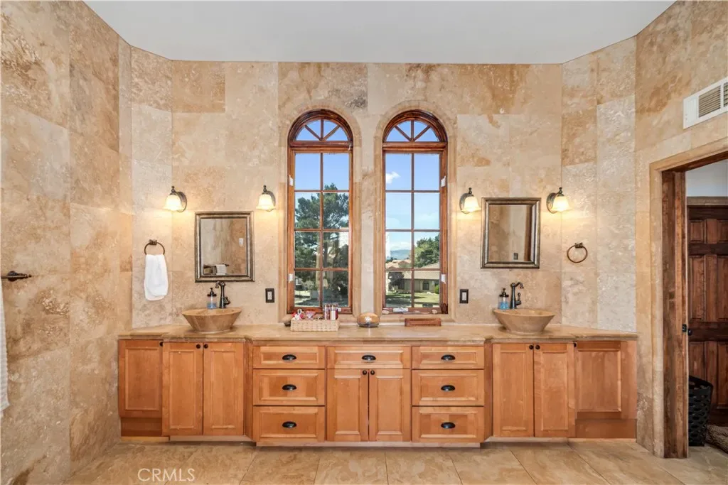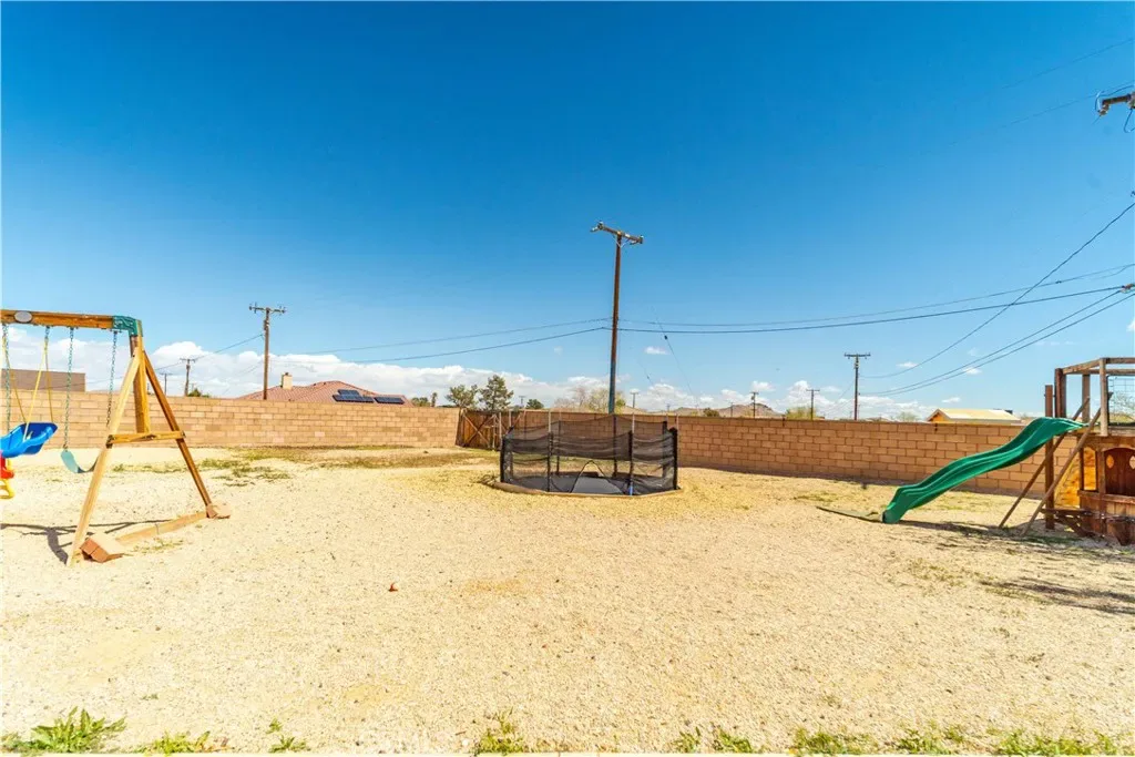 **Welcome to Your Dream Home!** Nestled on a quiet cul-de-sac in North California City, this stunning custom-built Mediterranean-style executive home offers elegance, comfort, and high-end finishes throughout. Step inside to a beautifully designed main floor featuring vaulted beam ceilings, arched windows, and a custom electric fireplace that adds warmth and charm to the spacious living area. Enjoy natural travertine flooring throughout, a gourmet kitchen equipped with granite countertops, Viking stove, built-in oven, microwave, dishwasher, refrigerator, and a walk-in pantry. The kitchen flows seamlessly into the dining area, making it perfect for entertaining. Downstairs also features a guest bedroom and full bath. Upstairs, the luxurious master suite is a true retreat, complete with walk-in closets, French doors leading to the patio, and a spa-inspired bathroom with floor-to-ceiling travertine, a heated jacuzzi tub, and a skylight that fills the space with natural light. Generously sized secondary bedrooms offer large walk-in closets, while additional upgrades throughout the home include fresh interior paint, recessed lighting, tinted windows, ceiling fans, a water filtration system, solar panels, and dual A/C units for year-round comfort. The spacious 3-car garage boasts epoxy flooring, and the entertainer’s backyard is ready for gatherings with a 12-ft tall pergola, above-ground pool, and an in-ground trampoline for endless fun. This home truly has it all—style, function, and luxury. Don’t miss your opportunity to own this incredible property!