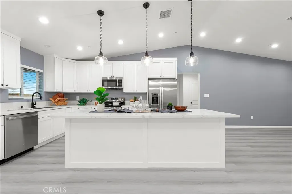 BEAUTIFUL BRAND NEW CONSTRUCTION!!!! Gorgeous 3 + 2, 1629 sq ft Single Family Home. This home has all the high-quality features that come with a modern semi-custom home. The standards that come with this home start with but not limited to a spacious, light and bright open floor plan, on-demand water heater, luxury vinyl plank flooring, dual pane argon gas filled windows, Quartz countertops, finger pull cabinets, quality appliances, ceiling fans and upgraded fixtures throughout, smart WI-FI thermostat, indoor laundry room, insulated garage, large fully fenced backyard, covered patio, front yard finished with beautiful hardscape, RV potential, exterior stucco and so much more. With all the modern conveniences of central heating & air, solar, and fire sprinklers, this house has it all!