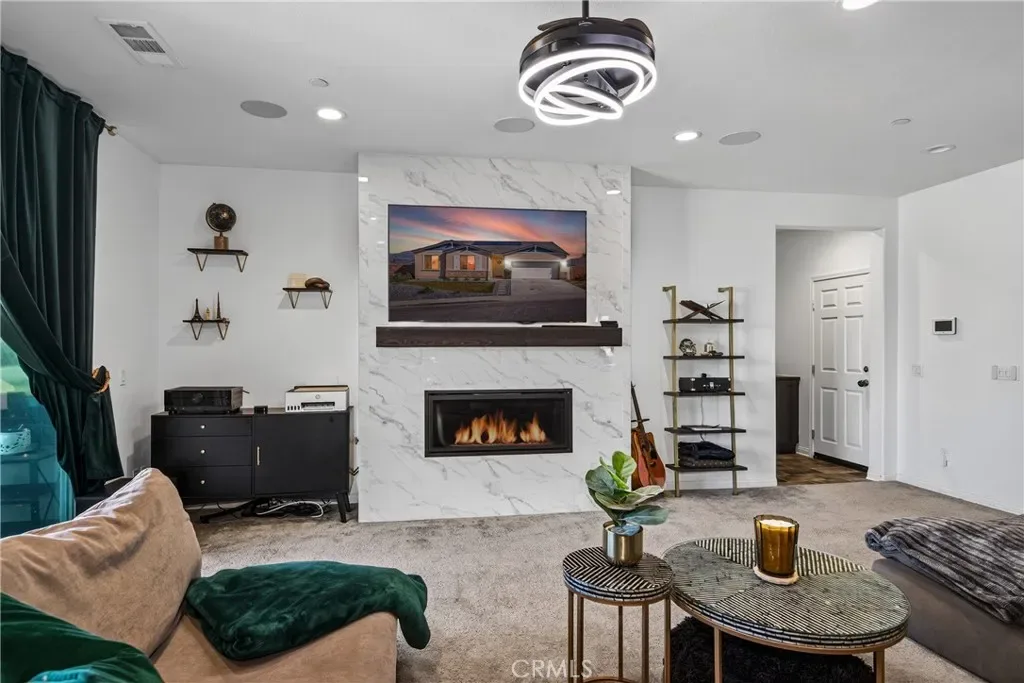 Step inside to an open-concept floor plan, with brand new Luxury Vinyl flooring, designed to feel both elegant and welcoming. Expansive windows and sliding glass doors frame the stunning views while filling the home with natural light. The inviting gas fireplace creates a warm focal point for gatherings or quiet evenings. Just off the main living area, a flexible entertainment space provides endless possibilities—whether you envision a billiards lounge, wine room or a home office.