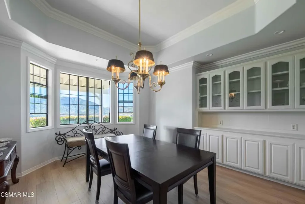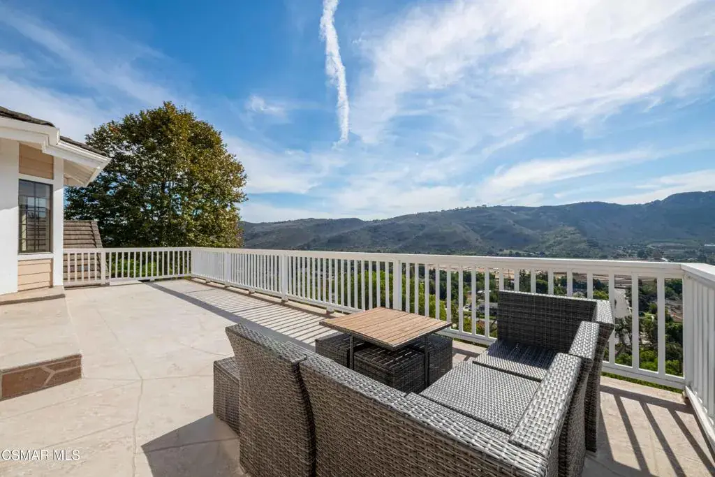Discover panoramic hilltop living in the heart of Santa Rosa Valley’s coveted equestrian community. Perched on an expansive 43,995 sq ft lot, this 3,925 sq ft residence blends timeless character with thoughtful modern updates–all surrounded by sweeping valley and mountain views.Inside, the home welcomes you with generous natural light, warm original details, and multiple spaces designed for gathering. The family room with a cozy fireplace flows into the formal dining room, creating an ideal backdrop for entertaining. The spacious kitchen features a large center island, updated appliances, and charming vintage elements that preserve the home’s character. An inviting eating area just off the dining room frames picturesque views of the backyard and rolling hills.The main level includes a full laundry room and a desirable bedroom with en-suite bathroom, perfect for guests or multi-generational living.Upstairs, the primary suite is a true retreat–complete with its own seating area, a see-through walk-around fireplace, and French doors that open to an expansive upper patio deck with breathtaking views. The spa-inspired primary bath offers a sunken jetted tub, dual vanities, a stall shower, and walk-in closets for ample storage. Three additional bedrooms and two bathrooms complete the upper floor.Outside, the grounds offer endless potential for outdoor living, equestrian amenities, gardens, or future customization–all framed by the privacy and serenity that only a hilltop setting can provide.A rare opportunity to own a view property in one of Ventura County’s most desirable equestrian enclaves.
