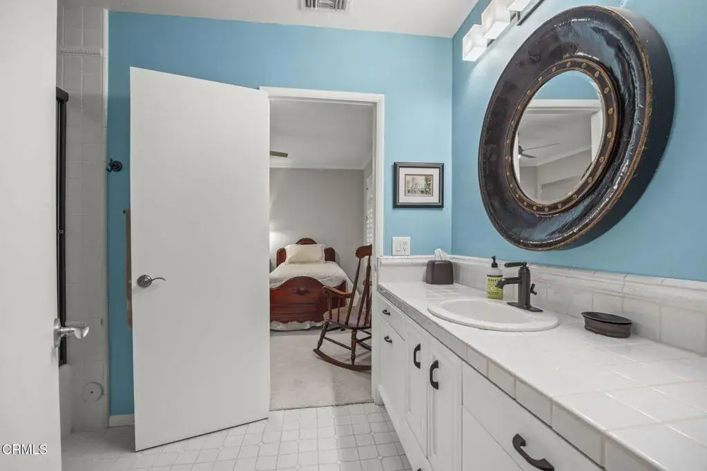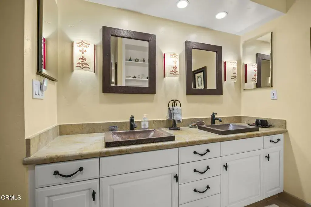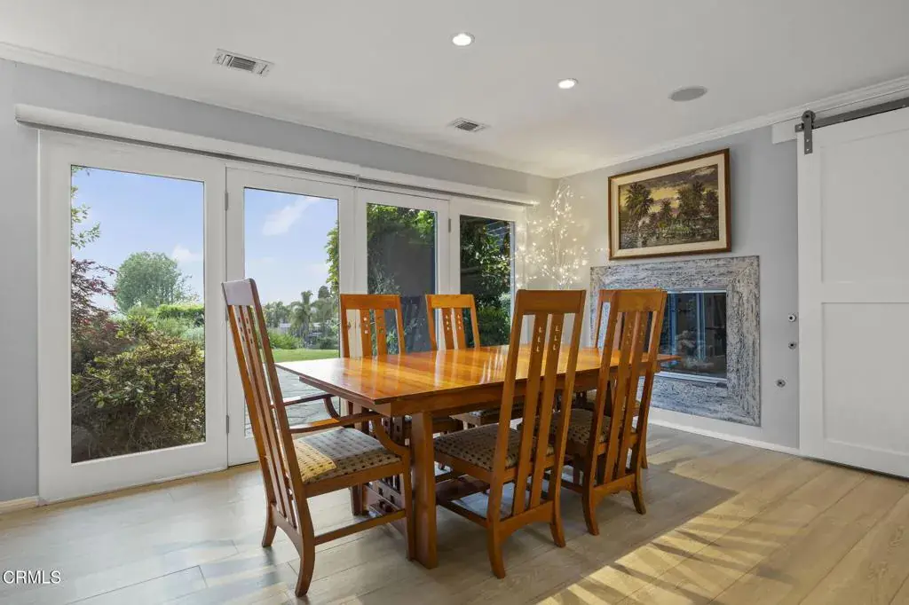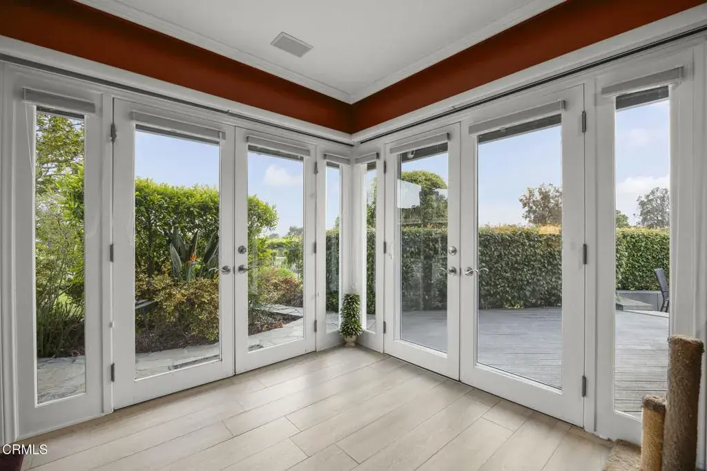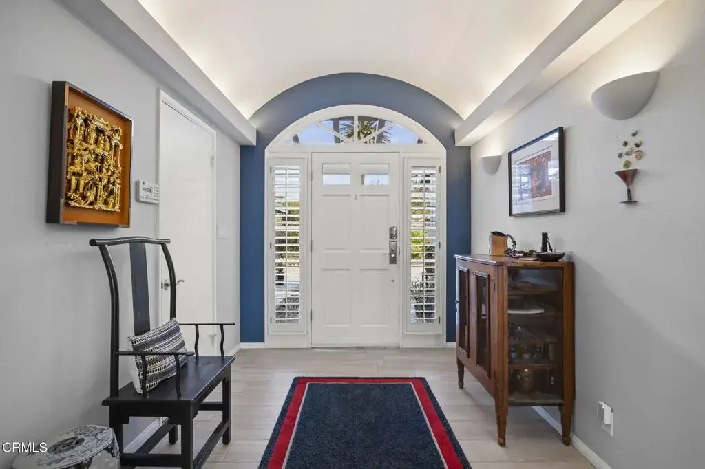 Back on the market with a incredible price improvement! Experience breathtaking golf course and mountain views from this stunning single-story home, ideally positioned on the 16th fairway of the Las Posas Country Club. Designed for true indoor-outdoor living, this property offers expansive multiple flagstone patios, lush landscaping, vibrant rose gardens, and a majestic magnolia tree–all framed by the natural beauty of the golf course. A gated path provides direct access to the fairway, perfect for a peaceful morning stroll or evening golf cart ride.From the moment you arrive, the home makes a refined statement with a oversized paver stone driveway, a bold red front door, and elegant flagstone entry. Inside, soaring ceilings, light wood-look tile flooring, skylights, and abundant natural light create an inviting, airy atmosphere. The home is thoughtfully equipped with an owned solar energy system and backup battery for energy efficiency and peace of mind.Views from almost every room! Formal living and dining rooms each feature a fireplace and French doors that open to the backyard, seamlessly blending indoor comfort with sweeping outdoor vistas. A third fireplace warms the secondary suite, offering a cozy retreat in its own private wing.The chef’s kitchen is both stylish and functional, with dual islands (granite for seating and butcher block for prep), white cabinetry, granite backsplash, and premium appliances. A walk-in pantry provides ample storage, while a built-in breakfast nook with yard access adds charm.The spacious primary suite is a true sanctuary, with French doors framing spectacular views, with a office enclave with built-ins, and a spa-like bathroom featuring a copper soaking tub, dual copper sinks, beautiful curved tiled custom shower, private water closet, and a boutique-style dressing room with custom extensive built-ins.Additional bedrooms offer crown molding, plantation shutters, mirrored closets, and built-in storage. The Jack-and-Jill bath includes a tiled tub/shower and skylight, while a marble-accented powder room adds a refined touch for guests.A well-appointed laundry room offers access to the side yard and a beautifully finished three-car garage with built-in cabinetry and extra storage.Capture this rare opportunity to own a thoughtfully upgraded home in one of Camarillo’s most prestigious golf course communities–where panoramic views and effortless elegance define everyday living.