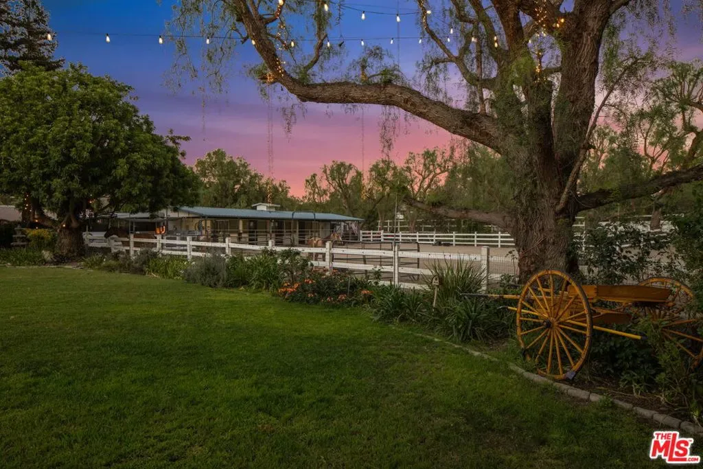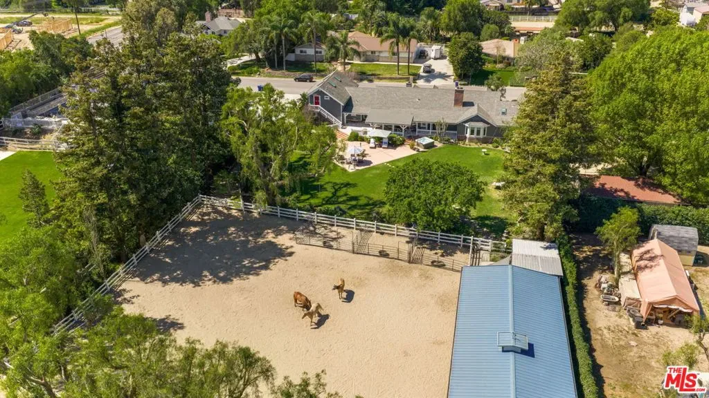 Magical Equestrian Ranch Retreat on over one flat acre located in the exclusive Santa Rosa Valley in California. This property is for those looking for an all-inclusive happy lifestyle in a gem of a community known for its semi-rural lifestyle, rustic charm, equestrian properties with access to many riding and hiking trails. The Ranch Retreat is also located with short distances to Southern California world renowned coastal beach areas. An additional Santa Rosa Valley treasure is the exceptional Santa Rosa Technology Magnet School for TK-8 located within Santa Rosa Valley (Pleasant Valley School District). The home has been recently renovated with many desirable features for your personal use and enjoyment. Featuring 5 bedrooms, 5 bathrooms, which includes an ADU located with its own separate entrance upstairs above the garage. Charming front yard with covered patio for your seating enjoyment and to appreciate the beautiful mountain views. Upon entering the double door threshold, you are greeted with charm, ease and you know you are home. The home layout is designed for both grand entertaining and quiet intimacy. The living room has a fireplace for your cozy days and nights to cherish with great windows for your views. The country kitchen has a center island, pantry, and breakfast bar for all your cooking and entertaining needs with views directly to your covered patio overlooking the grass area surrounded with exceptional landscaping (worthy of filming). You must come, see, and feel this Ranch Retreat to believe and know how magical it is. It also features a lovely dining room located off the kitchen. Both the formal living room and family room have fireplaces to enjoy with your family and friends. The large primary retreat is a true sanctuary, boasting a private fireplace, direct patio access with exceptional views, and a spa like en-suite bathroom with its own skylight, spa, shower, double sinks, walk in closet and heated floors. Plenty of space and room at the Ranch to spread out and create your own space to live, rest, and indulge in. Take time to relish the sunrises, mid-day, sunsets from your own amazing covered back patio for you, family, and friends – one of a kind. You can cook fabulous BBQ meals on the outdoor BBQ and luxuriate in the outdoor spa while enjoying the enchanting back yard area. Many newer renovations and upgrades include: Life Source water filtration system, 4-bathrooms, copper piping, LED lighting and switches, electric panel wired for portable backup generator, two on demand water heaters, garage door openers, new window coverings and shutters, invisible screens, and painting. The Equestrian Facilities are peerless for all your animal and pet needs. Large, fenced sand arena, with bonus gated side road for delivery access, RV parking and back gated exit to the expansive trail rides located within the Santa Rosa Valley, four stall breezeway barn with separate tack and feed rooms, wash rack, and chicken coop along with automated water system and fly system. Come and experience this private Magical Equestrian Ranch Retreat for your ultimate lifestyle dreams!