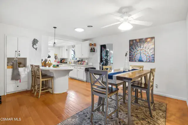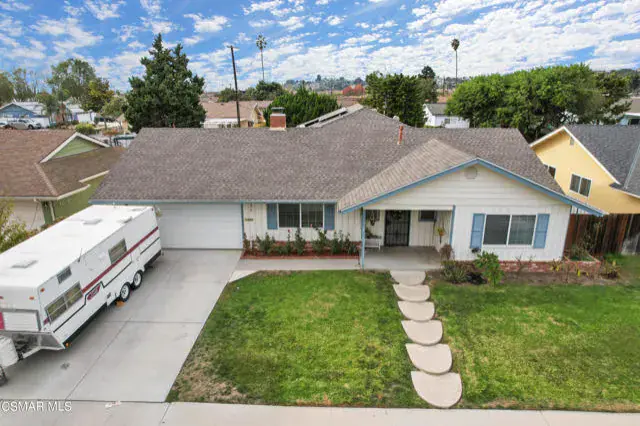 Check off every item on your wishlist in this charming home located in the heart of Camarillo. Design details include wood flooring, spacious living room with fireplace, expansive bonus room with cathedral ceiling and custom built-ins, plus the convenience of owned solar panels for environmentally friendly savings. Outdoor space includes a huge backyard with vinyl fencing, offering both covered and open hardscape and roomy greenspace that’s perfect for outdoor activities and entertaining. Galley-style kitchen includes tray ceiling and seated bar for casual dining along with a delightful garden window for your herbs. Exceptional location close to the best local shopping, dining, and Valle Lindo Park.