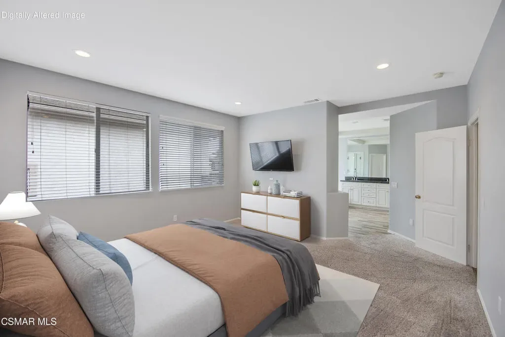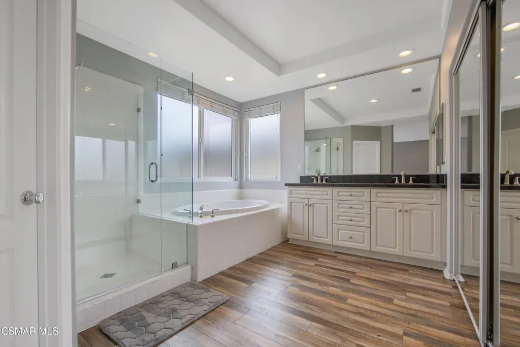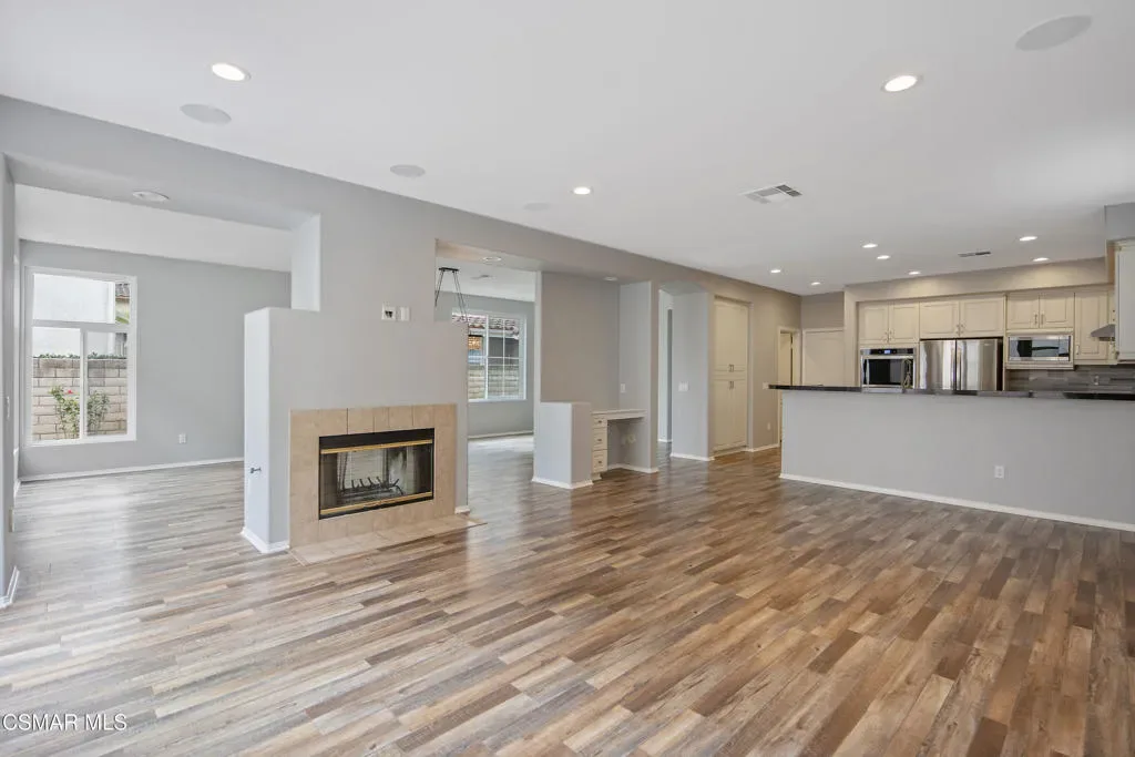 Welcome to an exceptional opportunity behind the gates at The Fairways at Sterling Hills in beautiful Camarillo. This stunning 2,570 sq. ft. four-bedroom, three-bath home is one of the only four-bedroom floor plans available in the entire community, making it a truly rare offering.Recently refreshed and move-in ready, the home features beautiful large plank flooring throughout, new windows, recessed lighting, surround sound throughout and fresh interior paint, creating a bright and modern feel from the moment you enter. The thoughtfully designed floor plan offers both a spacious family room and a separate living and dining room, perfect for everyday living and entertaining.The light-filled upstairs living area offers wonderful views through oversized windows that bring in an abundance of natural light, creating a peaceful and uplifting atmosphere. The primary suite is generously sized and includes a luxurious bathroom with large soaking tub, separate shower, and a walk-in closet.The kitchen showcases granite countertops, elegant white cabinetry, and a warm inviting layout, ideal for gathering with family and friends.Step outside to a secluded and tranquil backyard, perfect for relaxing, or simply enjoying the quiet surroundings. The property also includes a spacious attached two-car garage and convenient upstairs laundry room.Located in the gated Fairways at Sterling Hills community, residents enjoy access to resort-style amenities including a pool, spa, tennis courts, picnic area and community RV parking all set within a beautifully maintained neighborhood.Quiet, private, and calming, this is truly a one-of-a-kind home at this price point–offering space, style, and an unbeatable location.
