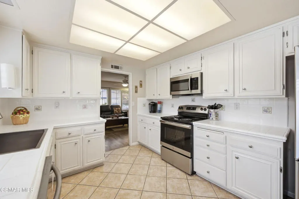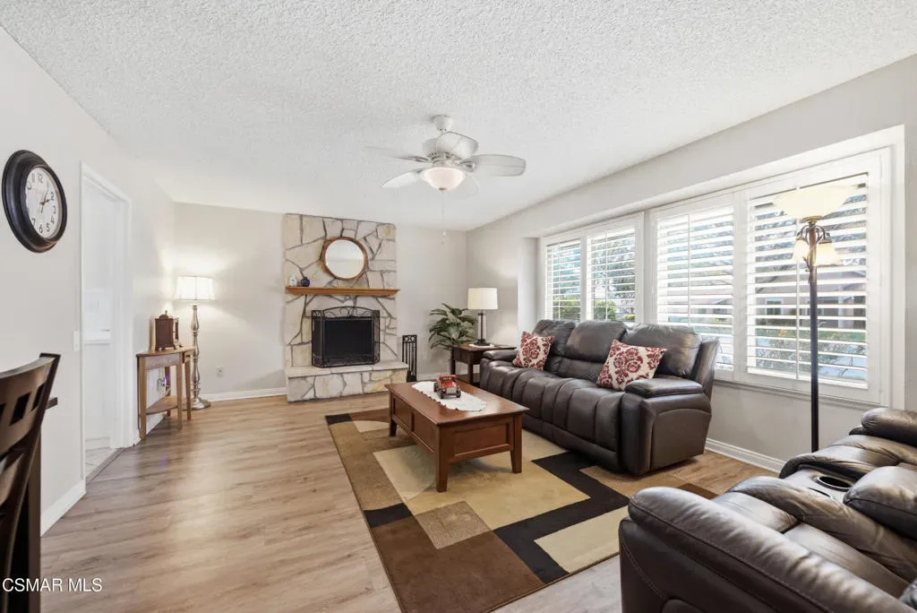Experience the ultimate 55+ lifestyle in Leisure Village–Camarillo’s most sought-after active adult community. Ideally located between Los Angeles and Santa Barbara, and known for its idyllic year-round weather, Leisure Village offers resort-style living in a secure, guard-gated setting. This move-in ready La Jolla model home is one of the largest floor plans in the community, offering exceptional space, flexibility, and thoughtful upgrades–perfect for today’s active adult buyer. What truly sets this home apart is its unique layout, ideal for dual living: two spacious bedrooms are complemented by separate sitting areas, offices, or craft rooms, allowing each occupant to enjoy their own private retreat within the home. Vaulted ceilings elevate the expansive living room, which opens through double French doors to a bright patio enclosure–creating a seamless indoor-outdoor living experience. This versatile bonus space is perfect for a home office, reading room, or additional lounge area filled with natural light. In addition to the standard den, this home offers an oversized family room featuring a cozy wood-burning fireplace. The kitchen is both functional and inviting, featuring stainless steel appliances, including a dishwasher, oven, and refrigerator, along with convenient pull-out pantry shelving. Step outside to your private patio, complete with a newer block wall and privacy trellis–an ideal setting for morning coffee, gardening, or simply enjoying Camarillo’s beautiful mountain views. Extensive system upgrades provide peace of mind and long-term value, including a newer HVAC system (2024), water heater (2022), and electrical panel (2022). Additional improvements include dual-pane windows and sliders, updated flooring throughout, plantation shutters, refreshed bathrooms, and ceiling fans. A spacious two-car garage with built-in storage provides space for all your needs. A pull-down ladder provides access to a large attic for added convenience. Residents of Leisure Village enjoy an unparalleled lifestyle with access to an 18-hole par-3 golf course, heated pool and spa, fitness center, tennis and pickleball courts, and scenic walking paths. The community also features a wood shop, ceramics studio, billiards room, library, and over 65 clubs and social groups–offering endless opportunities for connection and recreation. Located near shopping, dining, medical facilities, and parks, this home offers the perfect blend of comfort, convenience, and community. This is more than a home–it’s a lifestyle. Don’t miss your opportunity to experience the best of 55+ living in Leisure Village.