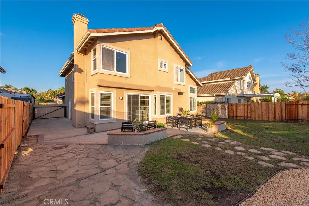Welcome home to this beautifully upgraded residence in the highly desirable Mission Oaks neighborhood of Camarillo. The formal living and dining rooms make a striking first impression with dramatic vaulted ceilings and expansive windows that flood the space with natural light, creating an inviting atmosphere and a flexible layout ideal for both entertaining and everyday living. The thoughtfully designed kitchen blends function and style, featuring quartz countertops, a classic subway tile backsplash, brand-new stainless steel appliances, crisp white cabinetry, and clean, modern finishes. A cozy breakfast area connects the kitchen to the spacious family room, where a stylish gas fireplace with a custom stone surround anchors the space and creates a true great-room feel—perfect for gatherings of any size. French-style sliding doors extend the living area to the patio and backyard, enhancing the seamless indoor-outdoor lifestyle Southern California is known for. The main level also includes a beautifully remodeled powder room and a spacious laundry room with built-in storage cabinetry. Upstairs, the primary suite serves as a peaceful retreat with vaulted ceilings and abundant windows overlooking the private, serene backyard—an ideal setting to enjoy stunning sunset views. The remodeled primary bathroom features a brand-new dual-sink vanity with quartz countertops, a soaking tub, a separate shower, and a generous walk-in closet with custom organizers. Three additional bedrooms are well-sized and thoughtfully positioned, offering versatility for guests, home office space, or additional living needs. The updated hall bathroom showcases a modern gray dual-sink vanity with quartz counters, sleek mirrors, recessed lighting, and a tub with classic subway tile surround. Recent upgrades include newly installed laminate flooring throughout, freshly painted interiors, brand-new lighting and fixtures, and professionally designed landscaping. The oversized backyard offers ample space to add a pool, spa, and outdoor kitchen, or simply relax and enjoy quiet evenings outdoors. Additional highlights include a three-car garage with built-in cabinetry and boat or possible small RV access. With no HOA and walking distance to Tierra Linda Elementary, this home delivers exceptional convenience and lifestyle appeal. Enjoy close proximity to neighborhood parks, tennis and pickleball courts, scenic hiking and biking trails, and a fantastic selection of nearby restaurants.