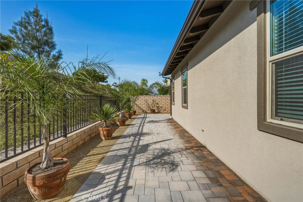 What truly sets this home apart is its rare lot placement. The side opens to a landscaped common area with guest parking, a feature not commonly found in the community. Additionally, the property offers a double-width entry patio and expanded rear walkway, providing more outdoor space and accessibility than most homes. The paver system, landscaping, and irrigation were custom-designed, creating a polished outdoor environment ideal for entertaining or quiet enjoyment.