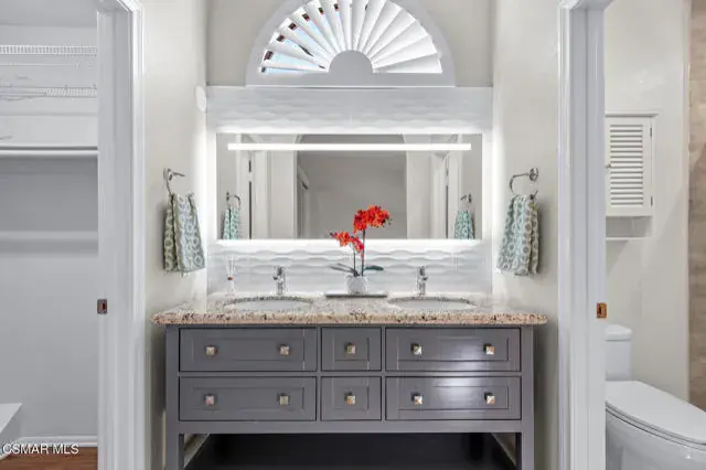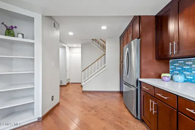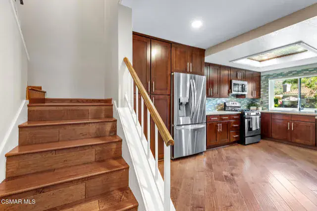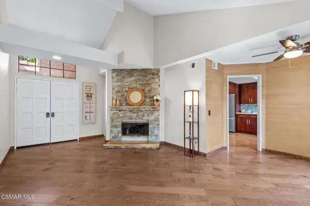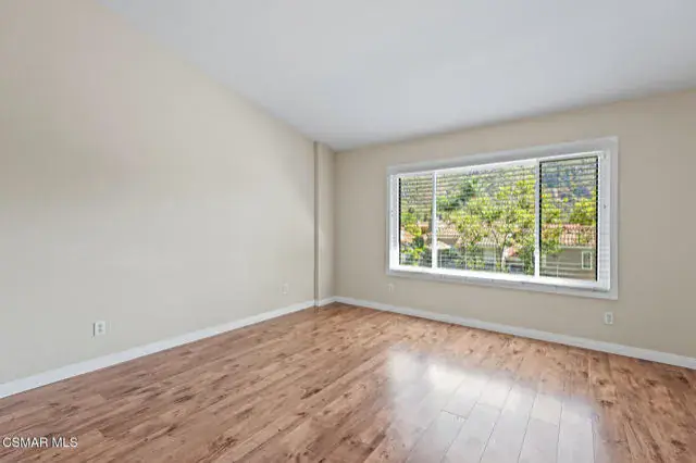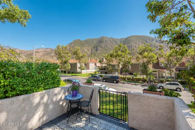 Welcome to 6208 Corte Antigua, nestled in the highly desirable Palmeras development at Camarillo Springs!This beautifully remodeled 2-bedroom, 2.5-bathroom townhome with over 1,400 s.f. of living space, is ideally situated on a quiet cul-de-sac within a private, gated community, offering spectacular mountain views from multiple rooms.Inside, the home boasts wood flooring throughout, newer dual-pane windows, and soaring vaulted ceilings in nearly every room. The living room features a striking stacked stone fireplace with onyx finish, while the adjacent dining area is enhanced by a ceiling fan and abundant natural light. The remodeled kitchen is a designer’s dream, showcasing an elegant coffered ceiling, custom tile backsplash, recessed lighting and expanded cabinetry! Adding appeal is direct access from the living room to a charming patio–perfect for relaxing and taking in the breathtaking mountain backdrop.Upstairs, you’ll find two spacious primary suites, each with vaulted ceilings and large windows that flood the rooms with natural light. Both en-suite bathrooms have been tastefully updated with modern vanities, stylish hardware, upgraded shower heads, granite countertops, and tile-enclosed showers with contemporary tile flooring.This home offers the feel of a detached residence with its bright, airy layout and thoughtful design. The attached two-car garage is finished with interlocking rubber flooring, upgraded lighting, washer and dryer station, automatic door opener, and a brand-new water heater (installed July 2025). The HVAC system was replaced approximately four years ago, ensuring comfort and efficiency.Residents enjoy access to community amenities including a pool, two spas, and a clubhouse. All conveniently located near the Camarillo Springs Golf Course, local shopping, dining, and top-rated schools.Truly move-in ready, this exceptional property is sure to impress even the most discerning buyer. Be sure to see it!