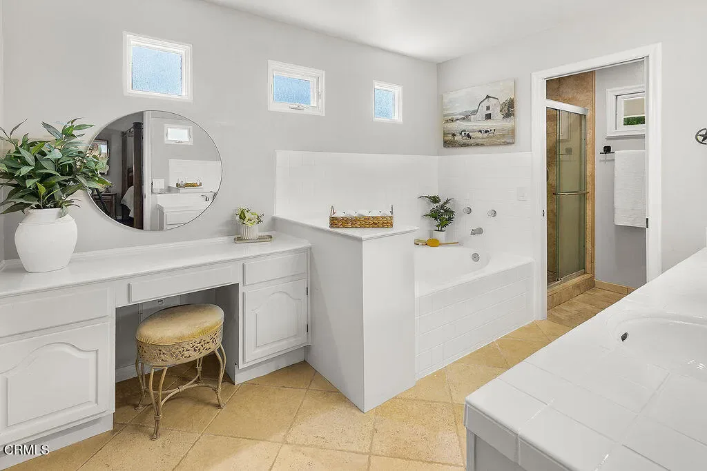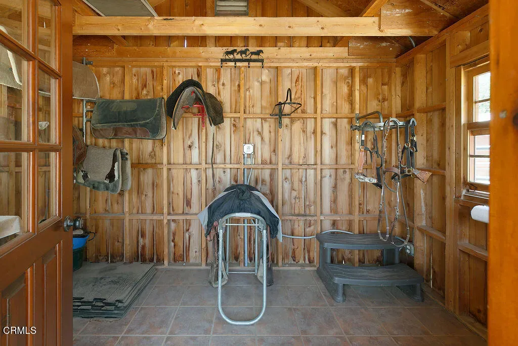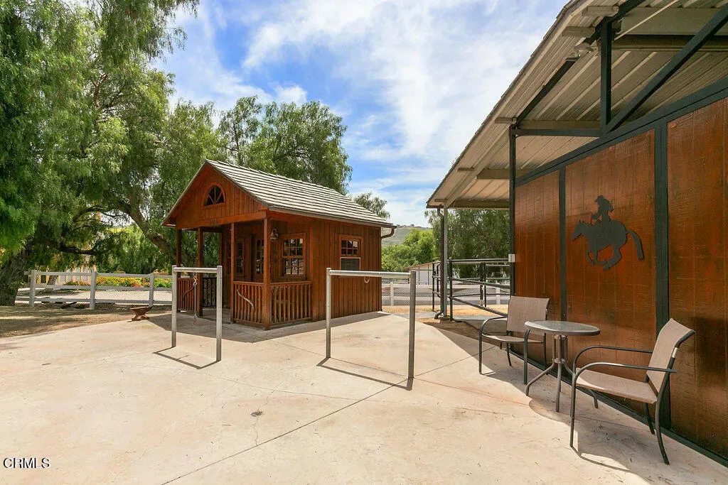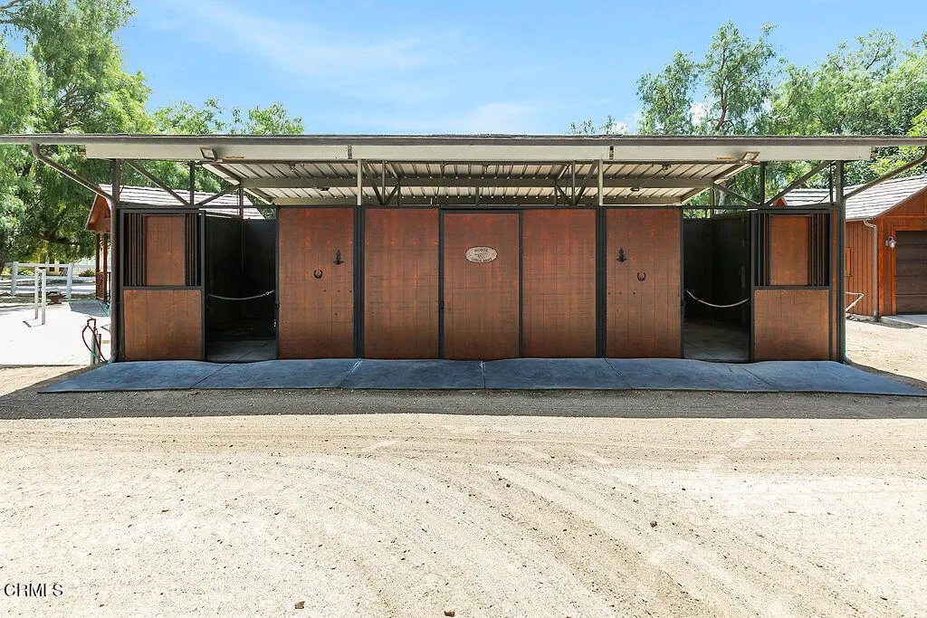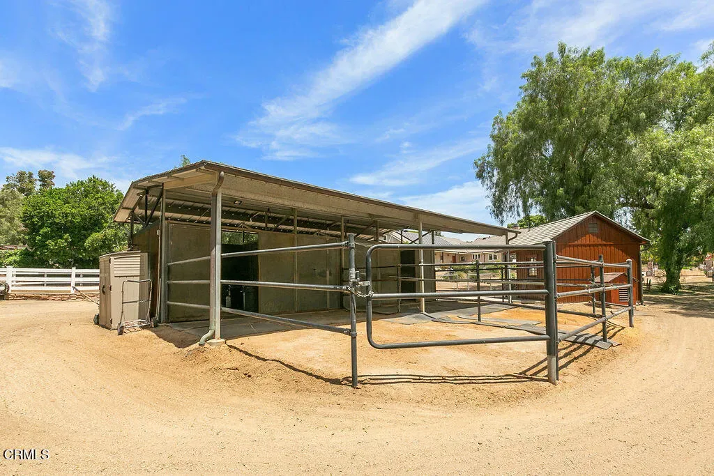 Equestrian Dream Estate. Experience luxury country living with this impeccably maintained single-story estate, ideally located in the heart of Santa Rosa Valley. Designed for equestrian enthusiasts and those who appreciate quality craftsmanship, this 4-bedroom,2-full, 2-half baths home sits on a fully usable 1-acre lot and offers the perfect blend of function, and privacy. Step inside to soaring vaulted ceilings with exposed beams in the living room, coffered ceilings in the dining and primary suite, and gorgeous wood/tile flooring throughout. The gourmet kitchen features a new LG Signature range and microwave, Bosch dishwasher, and custom wood shutters, while upgraded bathroom fans and a Kinetico potassium soft water system provide comfort and convenience. Retreat to the spacious primary suite with a custom walk-in closet, cedar-lined closets in the secondary bedrooms, and a dedicated home office space. Enjoy energy efficiency with double-pane windows, a whole-house fan, and a 7.3kW solar system with newer inverters. Car lovers and RV owners will appreciate the massive 2,100 sq ft garage with space for multiple vehicles or two RVs, featuring 2-custom wood doors plus a 16×12 RV entrance, full insulation, fire sprinklers, a gable fan/vent, and drywall throughout. For equestrian needs, this property offers:Two 12×12 box stalls with covered pens and Nelson automatic waterers, custom tack shack. Programmable fly repellent system, hitching rails, and an 85’x65′ arena with drainage.Barn offers enclosed center storage for easy feeding, Fire-Free roofing, copper gutter. Second driveway with iron gate access to equestrian area for feed and hay deliveries. Access to miles of riding trails and large private association arena. Additional highlights include:400-amp main power panel Master Swim Spa 12×22 tractor shed or garage 90% drip irrigation, fruit trees (2 Hass avocados, Meyer lemon, Bearss lime). This one-of-a-kind estate offers a rare opportunity to enjoy a peaceful ranch lifestyle with upscale finishes and unmatched attention to detail. Schedule your private tour today and discover the magic of Los Pinos living.