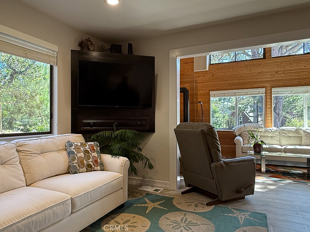 BEAUTIFULLY REMODELED and filled with natural light, this beautiful Cambria retreat blends warm wood architectural details, modern updates, and peaceful pine tree views just two blocks from Fiscalini Ranch Preserve. This light, bright, and airy 2-bedroom, 3-bath redwood home offers approximately 1,667 sq ft of thoughtfully updated living space on a large 6,708 sq ft corner lot. Just three steps up from the entry, the home opens into a beautiful light-filled space with warm wood walls, luxury vinyl plank throughout, a gas stove, and windows framing views of the surrounding pine trees. The open-concept living area flows into the dining space and beautifully updated kitchen featuring custom cabinetry, a convenient coffee bar, island with bar seating, and abundant windows that fill the home with natural light. Custom built-ins throughout add both charm and functionality. Upstairs are two spacious ensuite bedrooms, including a primary suite with peekaboo ocean view and beautiful sunsets. Outdoor features include a private fenced patio with spa for enjoying starry Cambria evenings, a greenhouse for gardening enthusiasts, RV parking, and a water catchment system. The property also includes a one-car garage with laundry and workbench plus a separate smaller storage garage. Located just a short distance from the Tipton Street trailhead of Fiscalini Ranch Preserve and miles of scenic oceanfront walking trails, this beautifully renovated home offers the perfect blend of comfort, nature, and the relaxed Cambria coastal lifestyle near the ocean.