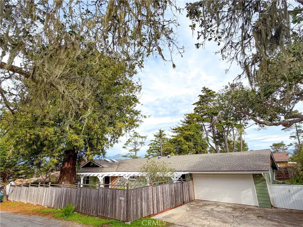 Welcome to this charming single-level home on picturesque Lodge Hill in Cambria—a rare 5-bedroom, 2.5-bath beauty situated on an expansive 7,000 sq ft lot. Originally built in 1938, this mid-century residence has been lovingly updated while preserving its warm character. Fresh interior and exterior paint, updated bathrooms, a newer roof, and beautiful hardwood floors ensure it is truly move-in ready. A spacious front courtyard offers wonderful privacy with its surrounding fence and inviting pergola—perfect for your favorite climbing vines. The majestic, mature Redwood tree in the front yard sets a stunning first impression, anchoring the property with its timeless presence. Gardeners will delight in the abundance of mature trees: lemon, maple, avocados, and apple, creating a lush environment year-round enhanced by two 275-gallon water storage tanks plumbed for irrigation, ready to support your green thumb and sustainable gardening dreams. Inside, a cozy wood-burning fireplace—also plumbed for gas—makes the living space warm and welcoming. The large deck in the backyard is ideal for entertaining, BBQ evenings, or simply taking in the peaceful views of the Santa Lucia Mountains. Additional features include a generous two-car garage with a storage/work room, a flat driveway, and a convenient breezeway connecting the garage to the home. There is even the possibility of creating a separate guest quarters.