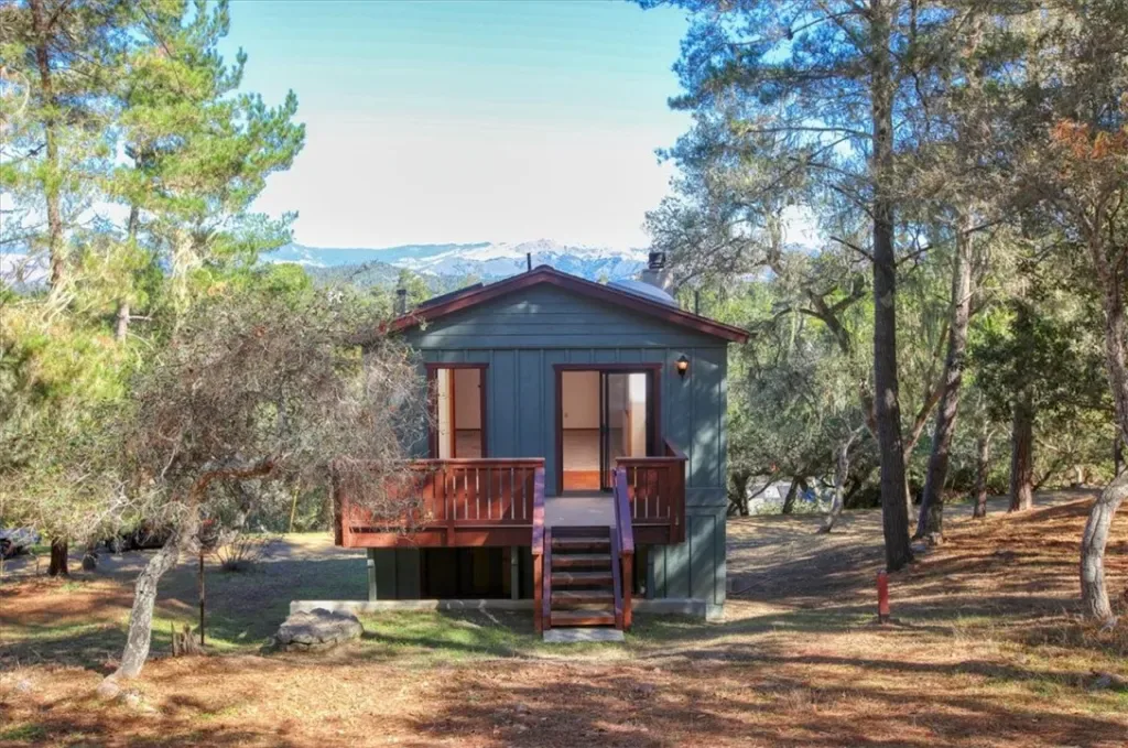Near the end of an infrequently traveled road lies a cute two bedroom, two bathroom house surrounded by an abundance of trees. Enjoy views over these trees out to the Santa Lucia mountains, especially from the upper level! The main level has the kitchen, dining and living area, the second bedroom, and the second bathroom. Upstairs is a large primary bedroom with a deck that has views out towards the west. This home was built by the owner, who included thoughtful aspects, such as a floor plan that creates the feel of additional space, down to a stackable washer/dryer unit in one of the primary bedroom closets. The MANY vacant lots surrounding all three sides give the house a very private feel.