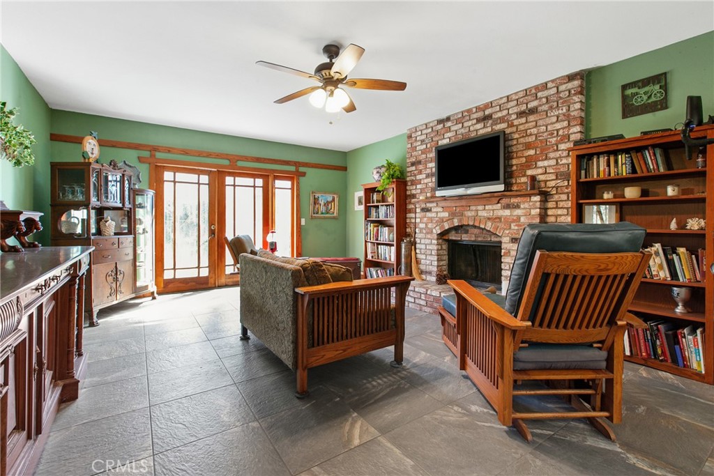 Step inside to a light-filled dining area that seamlessly connects to the main living spaces. Just a step down, the spacious family room features a beautiful brick wood-burning fireplace—perfect for cozy evenings or relaxed gatherings.