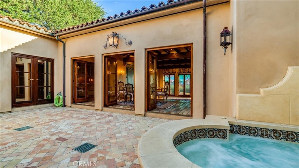 This elegant Italian Villa, ”Bellangelo,” overlooking Moonstone Beach in Cambria is a jewel in craftsmanship and location. This spectacular villa was designed for ocean views and is situated on a south facing, street to street parcel optimized for incredible weather. Designed by famed architect John O’Neil of Laguna Beach and built by Tony Peters, many materials were sourced from Italy and Tunisia. Generously sized rooms adorned with beams, hand scraped wood floors, and tall ceilings look out toward the sea or into an open-air inner courtyard. Glass doors from every room access the stone patios surrounding the home extending, the living areas and views. The villa has three bedrooms, large office/4th bedroom, 3.5 bathrooms, open living/dining area, chef’s kitchen with walk-in pantry, walk-in wine cellar, oversized 2 car garage, private open air courtyard with fireplace, in-ground spa and built-in grill, plus many patios with mature landscaping. The large boulders interspersed with mature plants evoke an Italian landscape. The primary suite enjoys dramatic white water views from both the room and the patio. It has a cast stone fireplace, extensive closets and a sumptuous ocean view, marble bathroom. Exquisite details and character fill this home such as Murano glass chandeliers and wall sconces, marble floors and counters from Fire Mountain in Tunisia, windows and doors are Albertini (made and imported from Italy,) antique terra cotta floors sourced from old Italian homes, hand quarried limestone from Loveless Texas, and hand scraped wood floors. The location is close to the West Village of Cambria with restaurants and shops, but it is also just across from the Moonstone Boardwalk. The garage and entrance are located on Stafford Street, leaving the front ocean view patios overlooking Moonstone Beach Dr.