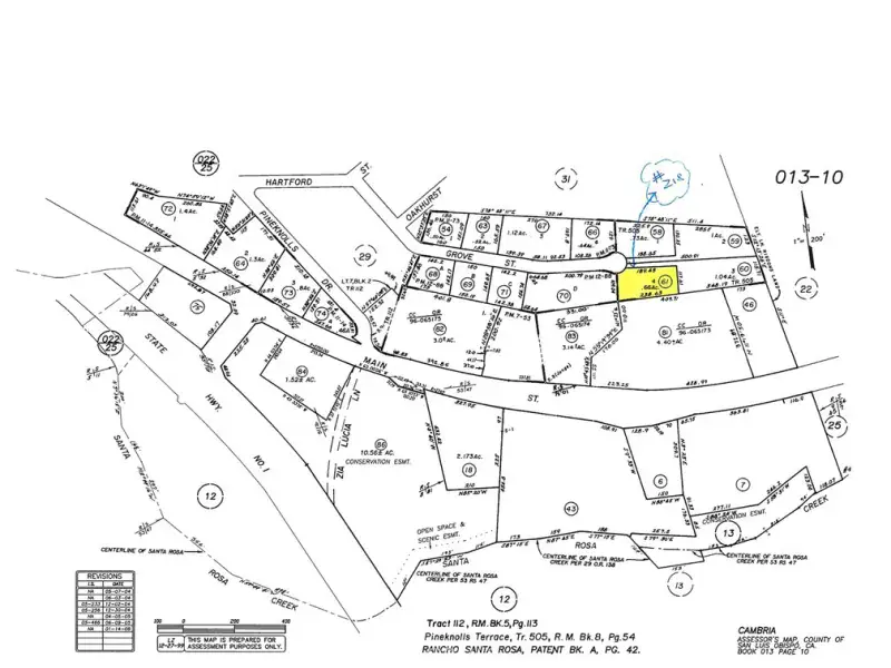 Pine Knolls Estates +-2/3 acre at the end of Grove Street with #218 on CCSD Water Wait List! Overlooks West Village to the Ocean and the Fiscalini Preserve. Gentle slope, easy access, private sunny area. Paved Street to the edge of the property. Don’t miss this Excellent Property! Buy and Hold for now until the current building moratorium for new construction is lifted. Check CCSD and county websites (cambriacsd.org & slocounty.ca.gov) for info on the moratorium & allowable uses for property. Price Reduced! Now $89,900!