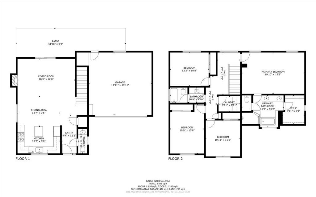 2 Full Bathrooms, 1 Half Bathroom
