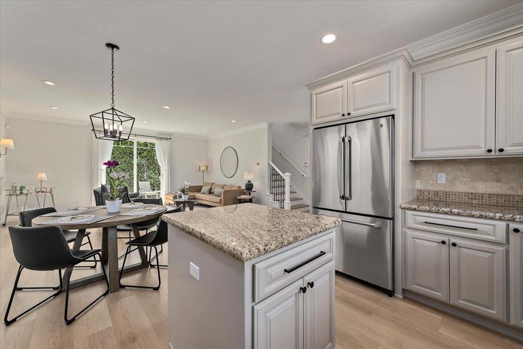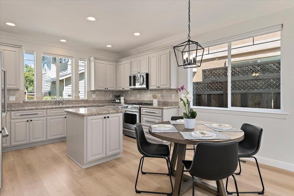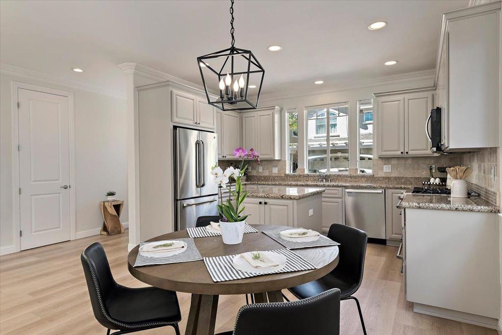 Spacious 4-bedroom, 2.5-bathroom modern family home nestled in the shadow of the iconic water tower in the heart of vibrant Downtown Campbell. The modern kitchen is spacious and features attractive painted cabinetry, granite countertops and tumbled stone backsplash as well as an island. Modern SS appliances include a gas range, microwave, dishwasher, and fridge/freezer. The kitchen seamlessly flows into the family/dining room, creating a perfect space for gatherings. Enjoy the warmth of the fireplace on cooler evenings or soak in the sun on your private patio. The primary suite includes a retreat space and a luxurious bathroom with a double vanity, oversized tub, separate large shower and walk-in closet. Natural light floods the home and you’ll find high ceilings, beautiful wood and tile flooring throughout. Additional features include central air conditioning with multi-zone capability and a convenient upper level laundry area complete with washer/dryer. The home also offers a 2-car garage with an electric vehicle hookup. Located steps away from the popular farmers market and all the boutiques and fine dining Downtown Campbell and The Pruneyard has to offer or jump on the VTA for a quick trip to Downtown San Jose.