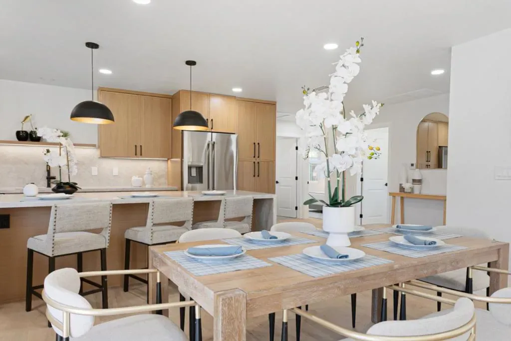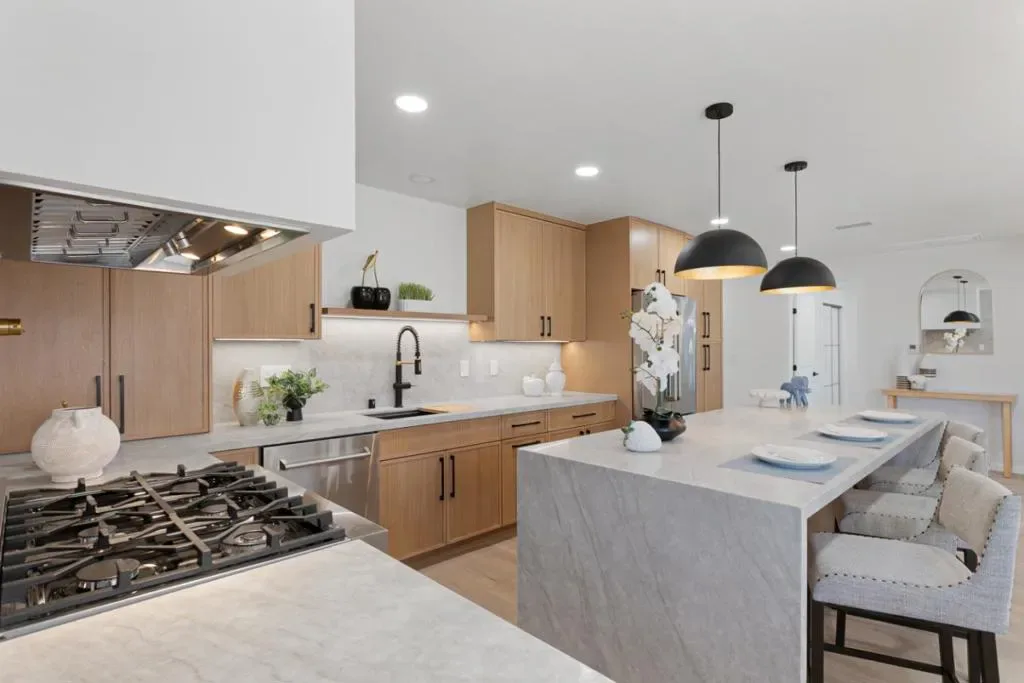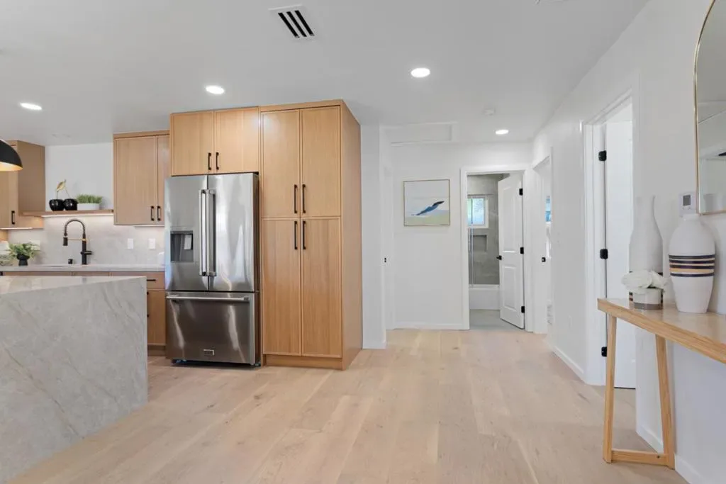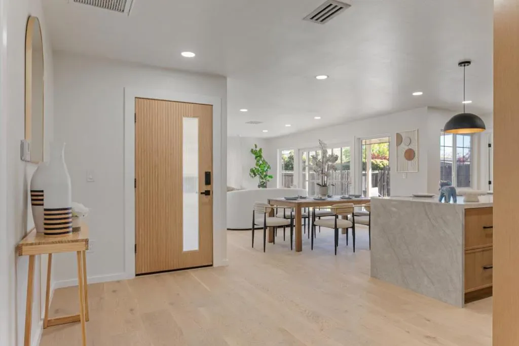 Fully renovated Campbell home featuring extensive upgrades inside and out. Highlights include new 9 wide plank flooring, fresh interior paint, recessed lighting throughout, and a beautifully remodeled kitchen with quartz countertops, waterfall island, custom cabinetry, and premium ZLINE appliances including a 36 dual fuel range. Major system improvements include brand-new plumbing (supply and drain lines), updated electrical with a 200A panel, new insulation, new drywall throughout the home and garage, new AC system, tankless water heater, and a new sewer line. The home also features a stylish living room fireplace with custom textured wall, updated bathrooms with Kohler / HansGrohe fixtures and designer lighting, new landscaping front and back, and a brand-new driveway. The upgraded garage offers epoxy flooring, built-in laundry, a 220V EV charger, and a custom pet wash station. Amazing location with easy access to major highways for convenient commuting.