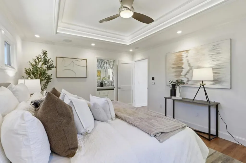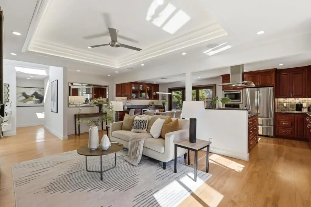 Absolutely stunning 3 bed | 2.5 bath home offering 1,887 SF, thoughtfully rebuilt and remodeled in 2015 with exceptional quality throughout. Dramatic vaulted gallery entry with skylights sets the tone, filling the home with natural light. Separate living room and open-concept family room/kitchen each feature striking linear gas fireplaces with stacked stone surrounds, custom built-in cabinetry, including dedicated AV storage.The beautifully appointed kitchen showcases rich cherry cabinetry, granite countertops, gas cooktop, stainless steel appliances and a wine refrigerator. Expansive La Cantina accordion doors seamlessly extend the living space to a private backyard with pavers and a fully equipped outdoor kitchen, ideal for indoor-outdoor entertaining. Additional highlights include owned solar, LED lighting, alarm system, multi-zone climate control with smart thermostats, Toto toilets, coffered ceilings in the family room & primary suite. Extensive high-tech upgrades include remote-operated skylights, irrigation system, garage access and full Ethernet wiring throughout. Ideally located near top-rated schools, Westgate Center, Westgate West & El Paseo de Saratoga with vibrant shopping & dining. Convenient access to major commute routes, Kaiser Hospital, Apple and so much more!