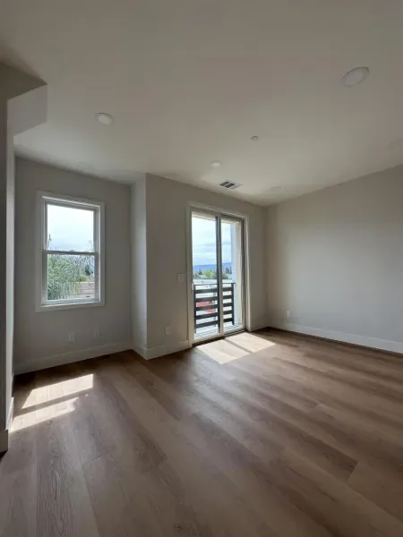 Gorgeous new construction in Campbell, near the Pruneyard and downtown with easy access to shopping, dining, and amenities. Highly regarded Cambrian schools. Bright interior with large windows, southern exposure, and three balconies. Main level features open living area. Kitchen includes polished porcelain countertops, peninsula and island, and custom cabinetry with ample storage. Brand-new Samsung and LG appliances: French door refrigerator, induction cooktop, oven, microwave, and dishwasher. Opens to living and dining areas for functional flow. Modern finishes throughout. Two bedrooms on the third level, each with its own bathroom featuring tiled finishes and quartz countertops. Washer/dryer on this level. Attached tandem 2-car garage with Level 2 EV hookup, storage, and epoxy flooring. Modern and energy-efficient features include Ring doorbell, mini-split HVAC, dual pane windows and solar options. Near parks, trails, restaurants, shopping, and local events, with access to major Silicon Valley employers and San Jose International Airport. Some photos are from model unit with similar floor plan; finishes may vary.