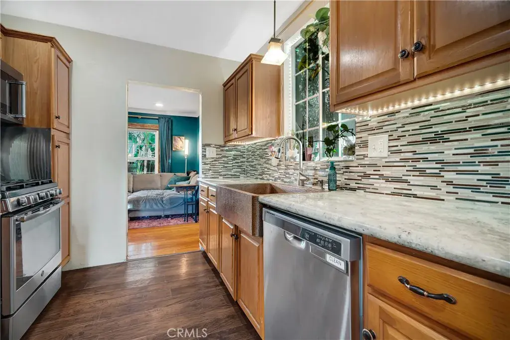 Exceptional opportunity to own a versatile property featuring two homes on one lot — ideal for owner-users wanting tons of privacy, a family compound or investors seeking strong rental potential and long-term appreciation. The traditional aprox 752sqft front residence offers 2 bedrooms and 1 bathroom providing comfortable single level living space. The contemporary ADU built around 2018 has it’s own address and is aprox 1,200 square feet with 3-bedrooms and 2-baths. Showcasing modern design and quality finishes throughout including quartz countertops, beautiful cabinetry, laminate flooring, tiled shower walls. The spacious layout also includes a private backyard area, separate gas and electric meters and laundry, adding convenience and flexibility. A detached two-car garage is currently divided and used as additional storage. Keep it as storage, convert it back to a garage or posibly built it out as a third unit. The lot is fenced with a power gate increasing the privacy and security. Whether you choose to live in one residence and rent the other, or lease both units to maximize income potential, this property offers a ton of options and the rare advantage of dual dwellings on one lot — making it a smart addition to any real estate portfolio.