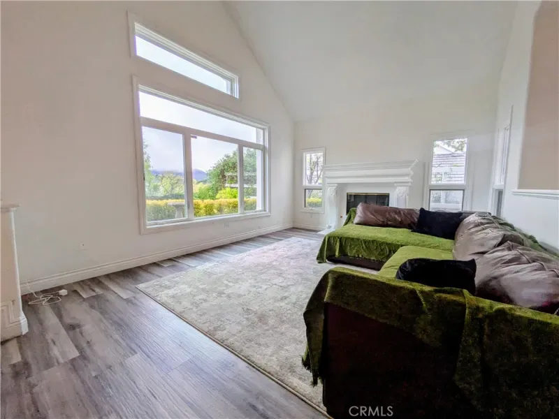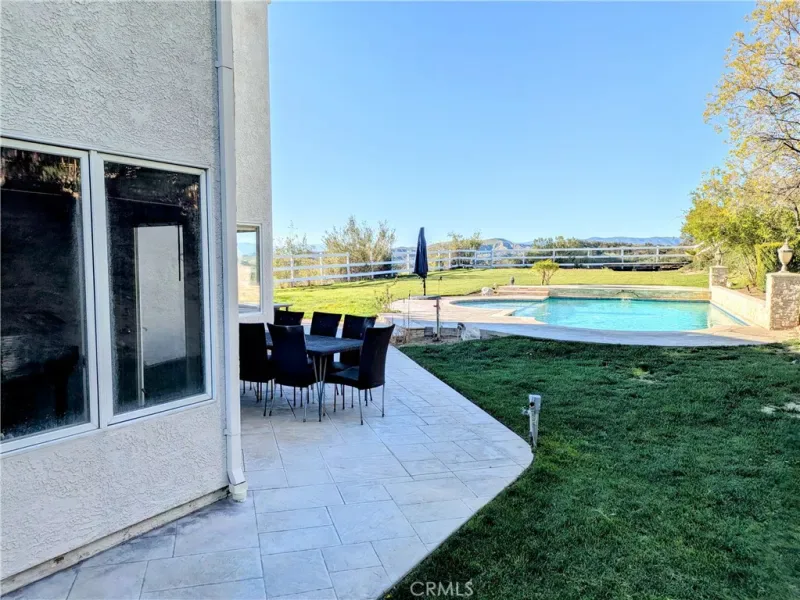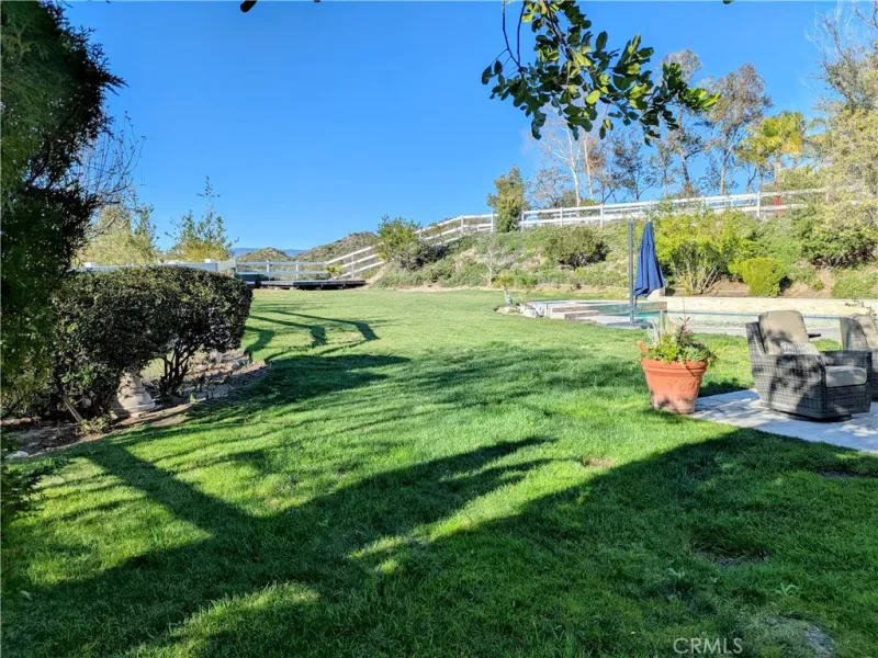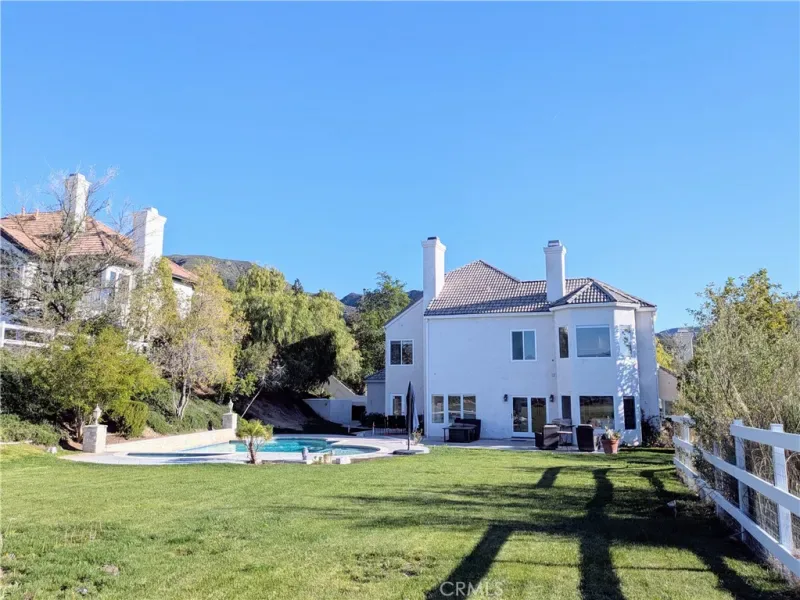 Situated on an expansive private lot, this beautiful residence offers a perfect blend of sophisticated design and California outdoor living. The property is framed by mature trees and lush garden spaces, all centered around sweeping views of the valley and sunsets over the Sierra Pelona Mountains.