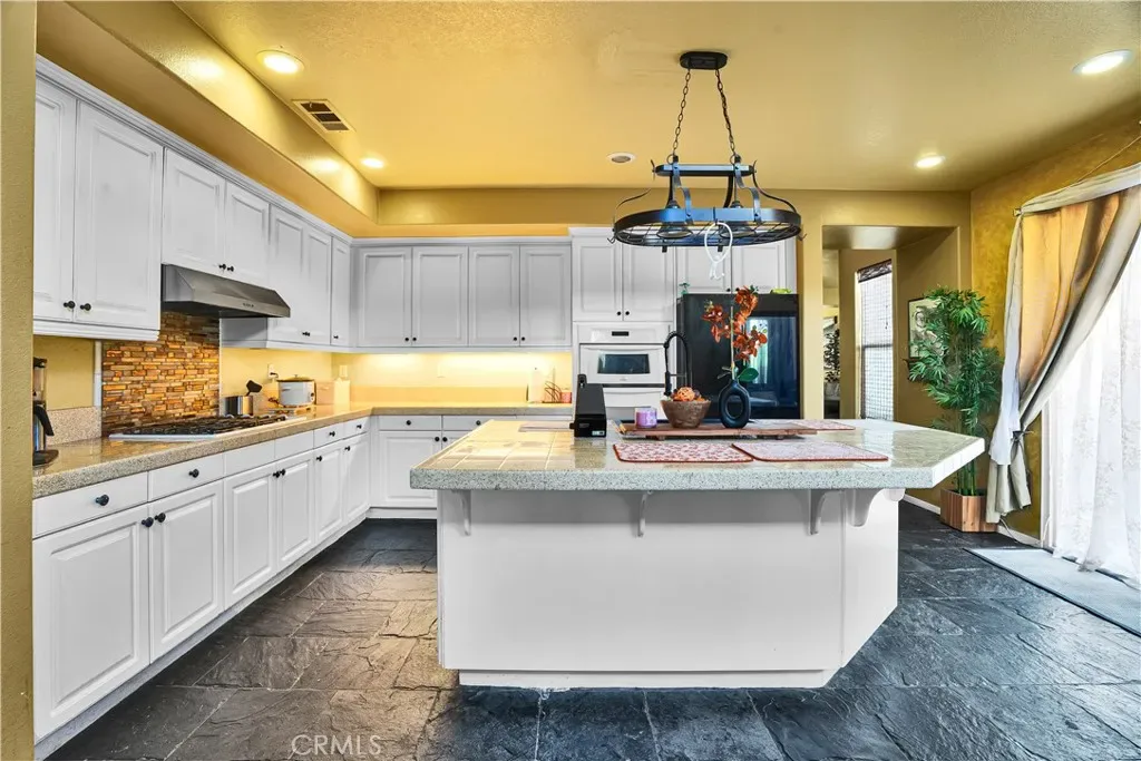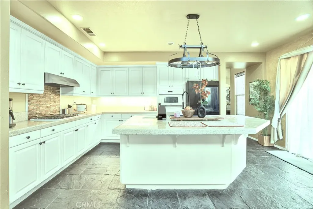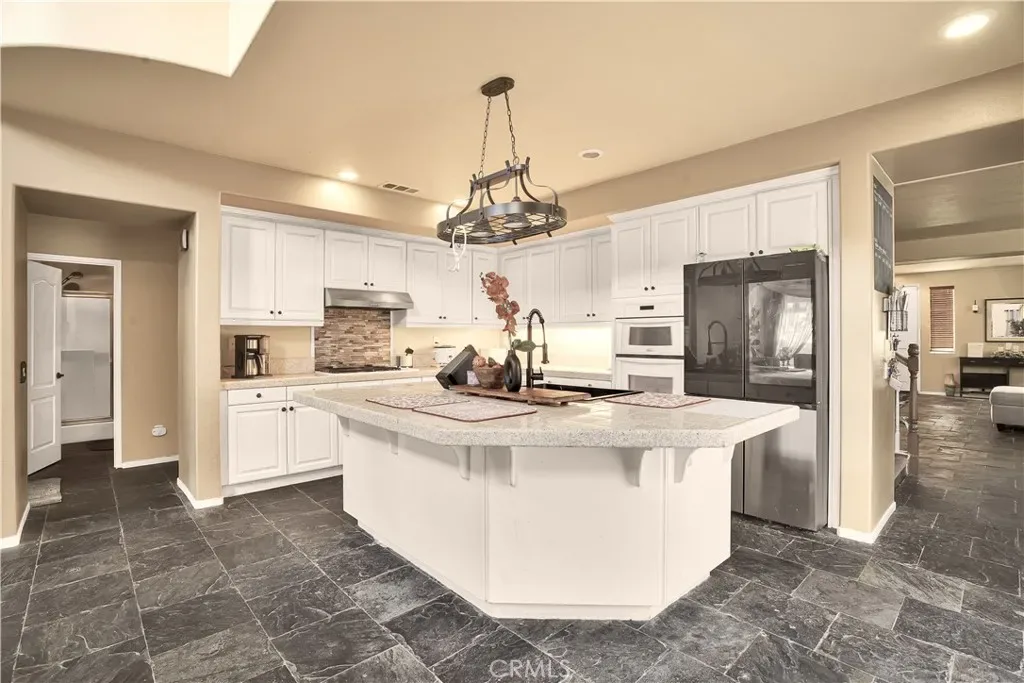 Buyer Opportunity. One of the best values for a 5-bedroom home in the area. Tucked at the end of a quiet cul-de-sac, this spacious 5-bedroom, 3-bath home offers the perfect blend of privacy, flexibility, and indoor-outdoor California living. With soaring ceilings and an open-concept layout, the home feels light, airy, and designed for both everyday comfort and effortless entertaining. The heart of the home is the expansive kitchen, featuring a large center island, abundant cabinetry, and generous prep space—flowing seamlessly into the family and living areas.