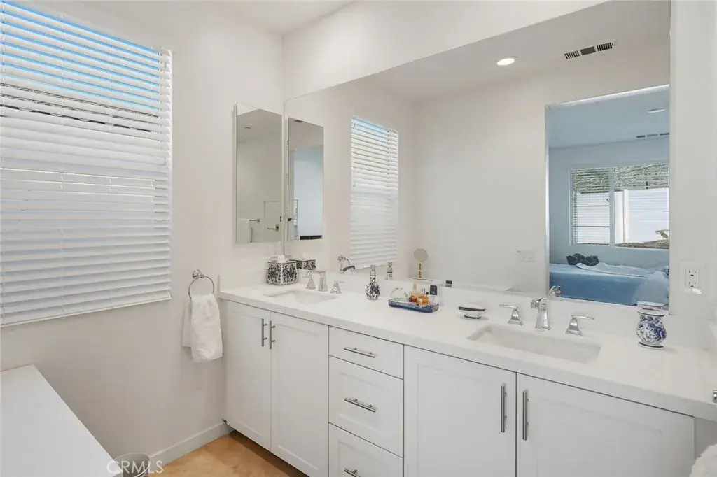 The Large Primary Bedroom has a Large Walk-In Closet with plenty of privacy. The Luxurious Primary Bathroom has Quartz Counters, double sinks with cabinets and a Huge Walk-In Shower. It feels like you are at a spa! The Guest Bedroom and Bathroom are ideally close to each other with privacy and a coat closet nearby. The guest bedroom has ample closet space and plenty of sunlight streaming in.