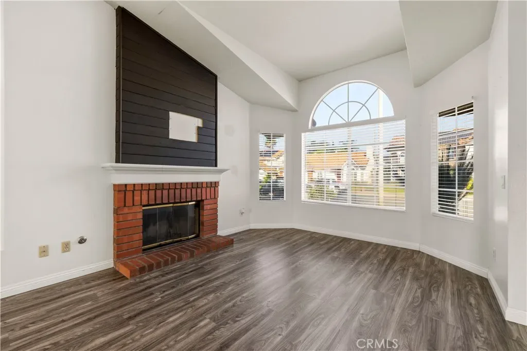 The living area is centered around a cozy fireplace, with large windows that continue to showcase the breathtaking views of the valley and surrounding hills—truly one of the best view locations in Santa Clarita.