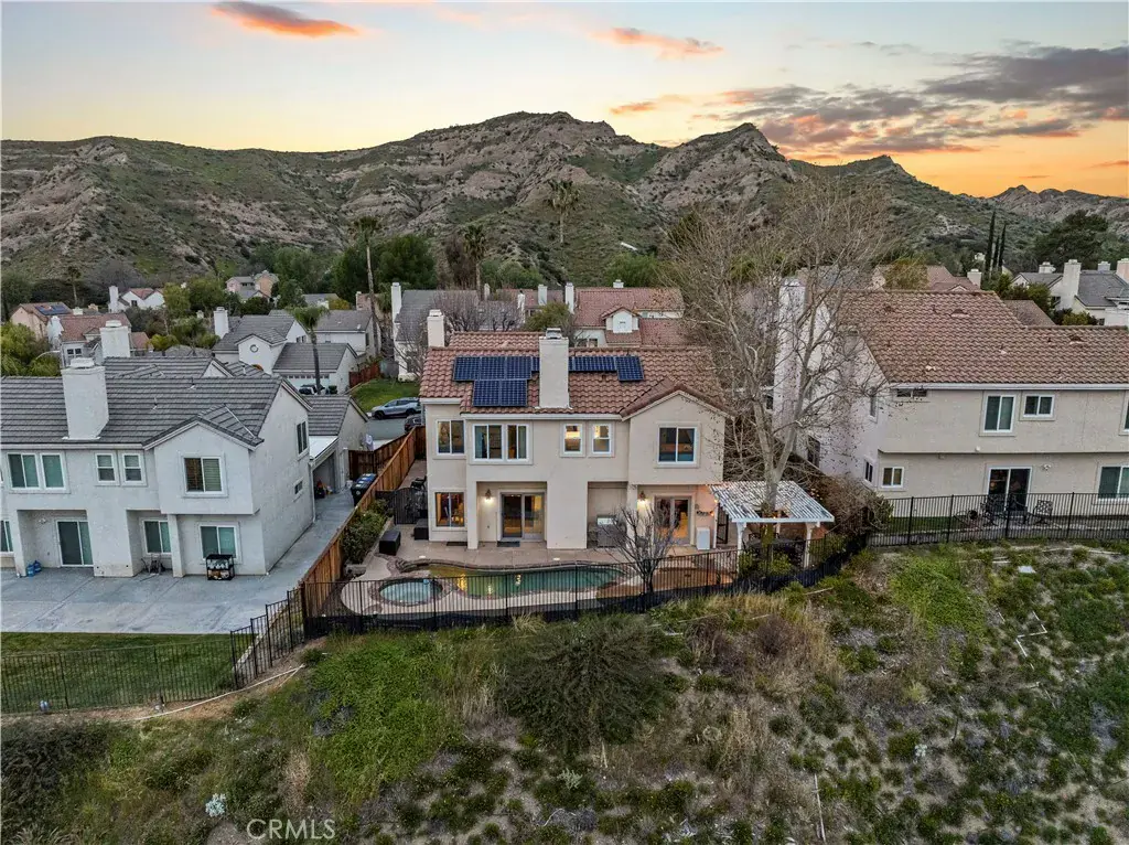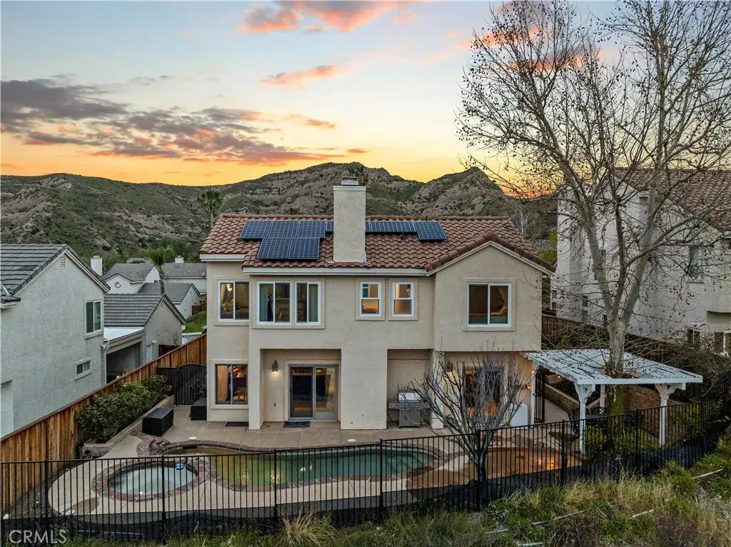 Experience one of the most breathtaking VIEW HOMES in all of Santa Clarita. Imagine sitting in the spa watching the sun set with a glass of wine as you overlook the lights & rolling hills of the city. Perfectly perched to capture sweeping city views and mountain vistas, this home is as much about the lifestyle as it is about the property. Step inside this 2,450 square foot estate & find 4 bedrooms, one of which is currently a library/office space that had the door removed but could easily be converted back, 3 full bathrooms, cherry wood cabinets, striking COPPER COUNTERTOPS, and a charming Mediterranean courtyard that creates a private retreat- an ideal spot for entertaining and gardening. Entertain with ease thanks to a spacious butler’s pantry, while the newer HVAC and water heater keep everything running efficiently. OWNED SOLAR helps keep energy bills very low. The backyard delivers true resort-style living. You can choose to either relax in the spa as the sun sets over the mountains, or host Summer time poolside gatherings with family and friends– with space, privacy, and unforgettable views, this home offers the lifestyle that buyers seek but rarely find at this value.